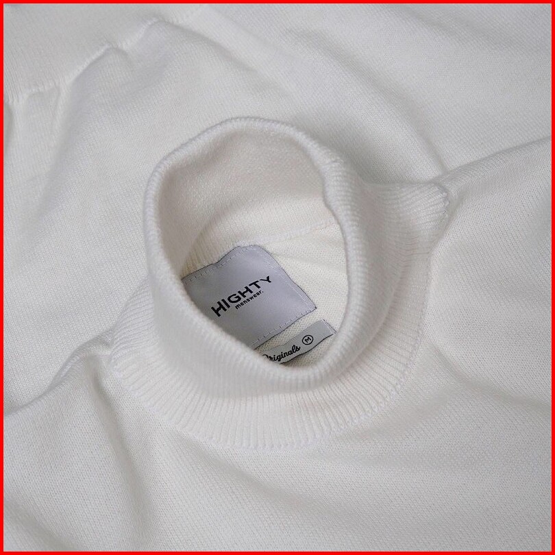 Highty White Knitted Turtleneck Sweater Jaket Seiter Kerah Tinggi Pria