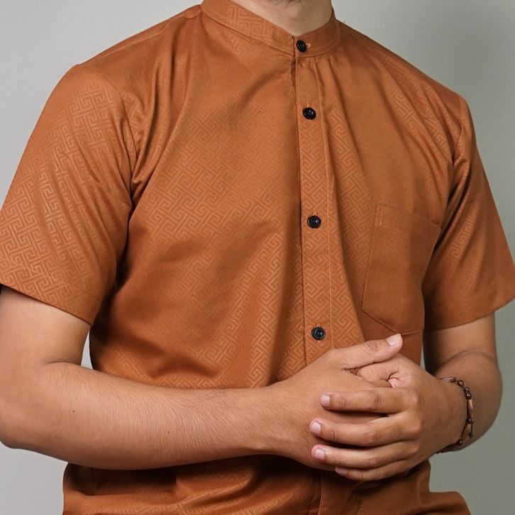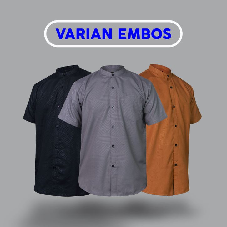 [Mall] Baju Koko Pria Lengan Pendek Kemko Polos "Faizan" Gabungan Polosan & Motif Embos / Baju Koko Dewasa Jumbo Terbaru