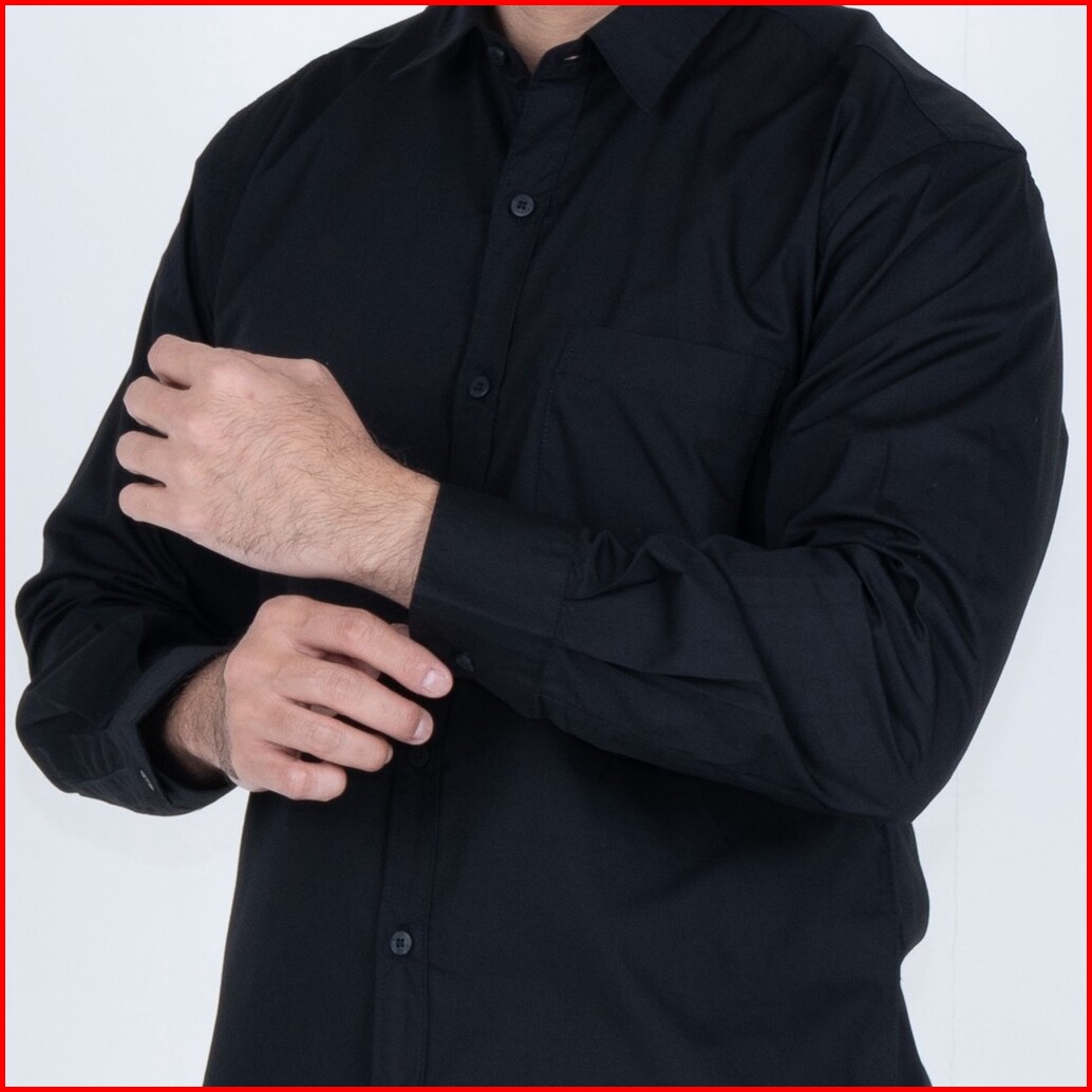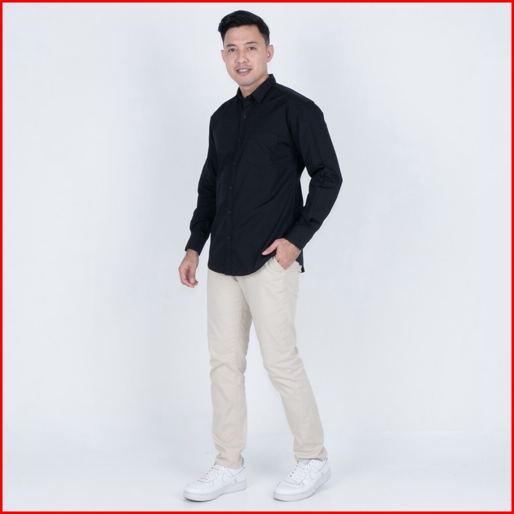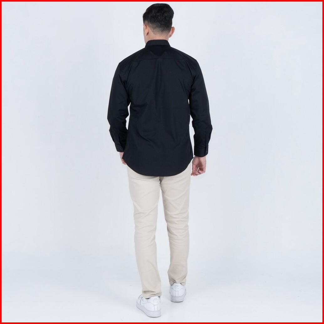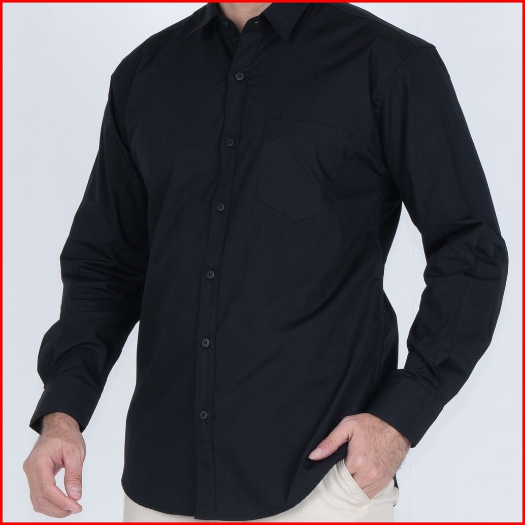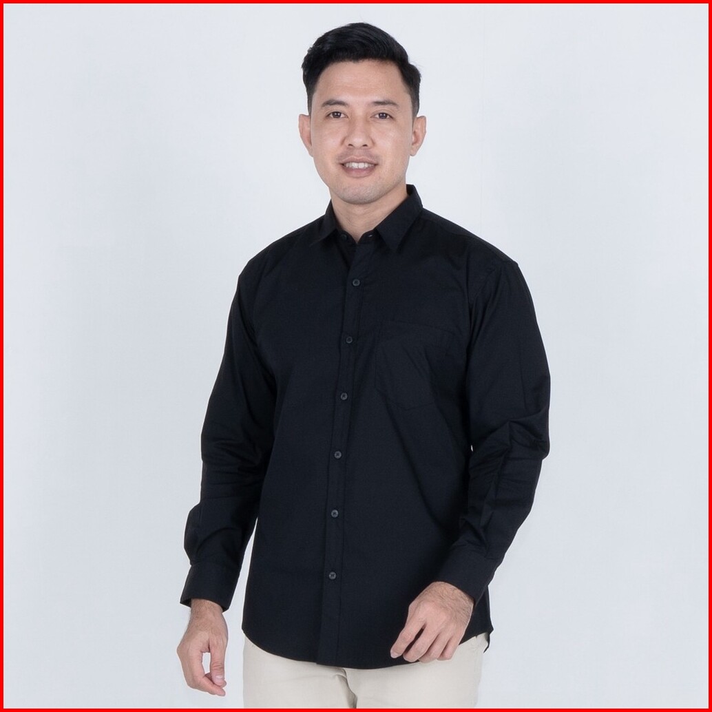 Benhill Kemeja Basic Formal Pria Panjang Katun Poplin Black 27357-58-16233