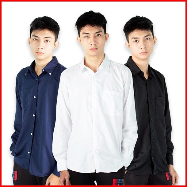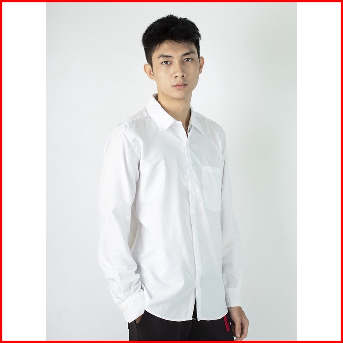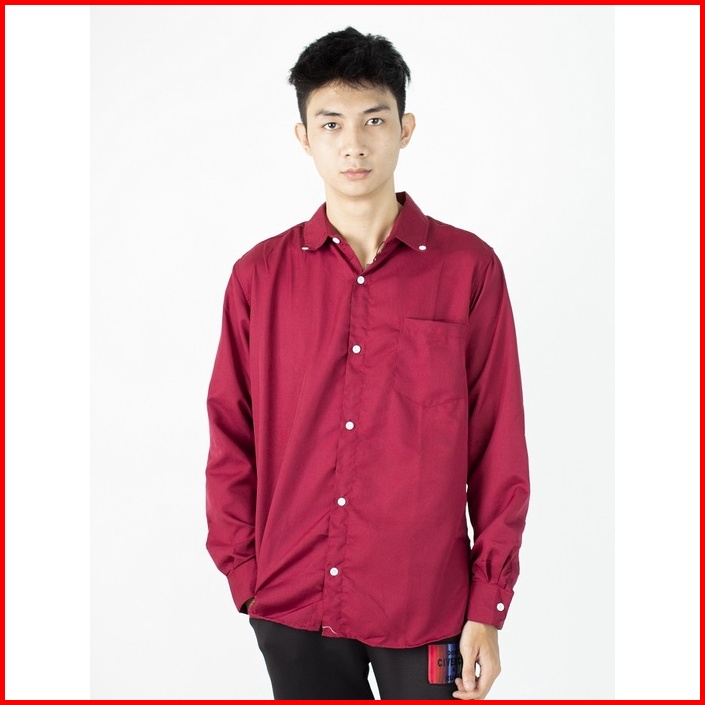 Fortklass Kemeja Polos Pria Lengan Panjang Kemeja Cowok Reguler Hem Cowo Tangan Panjang Kantor Training Interview Kerja