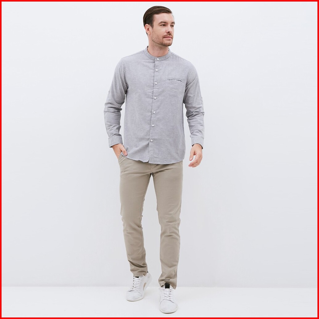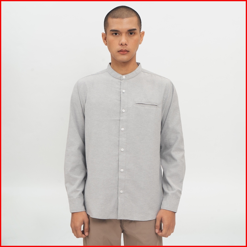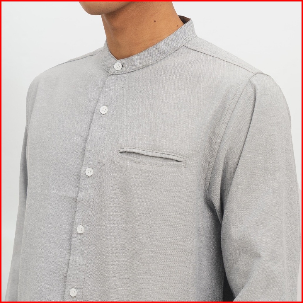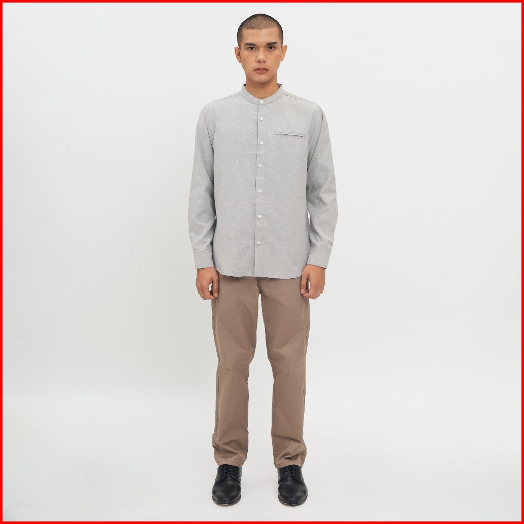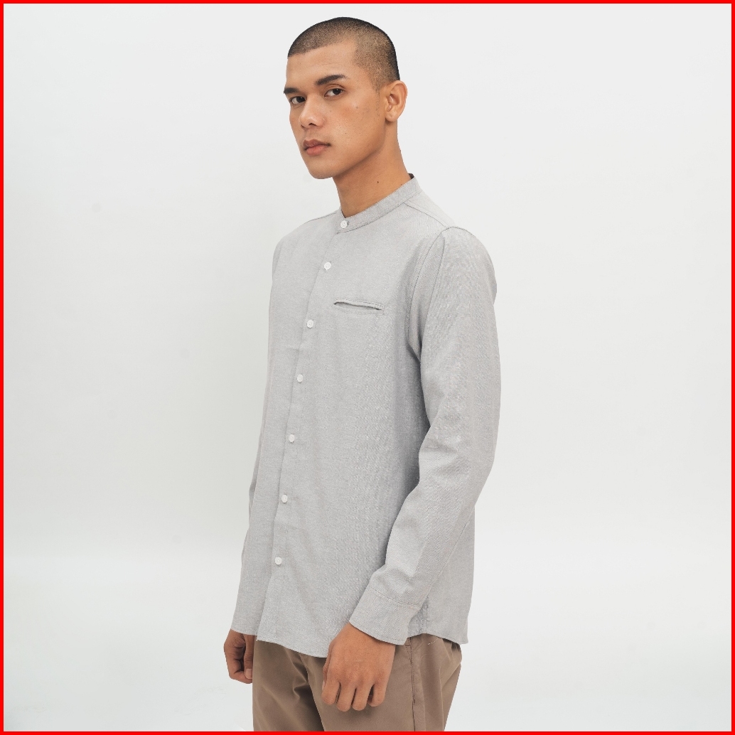 M231 Kemeja Pria Koko Shanghai Polos Oxford Panjang Abu 1552g
