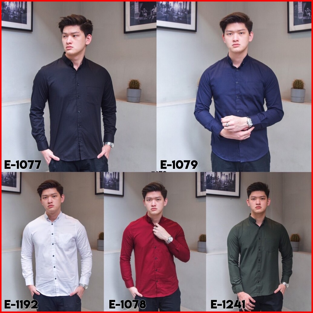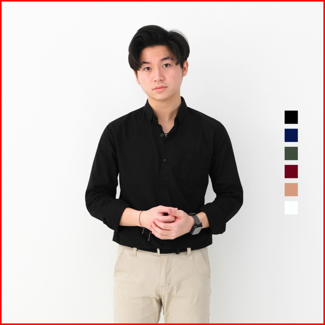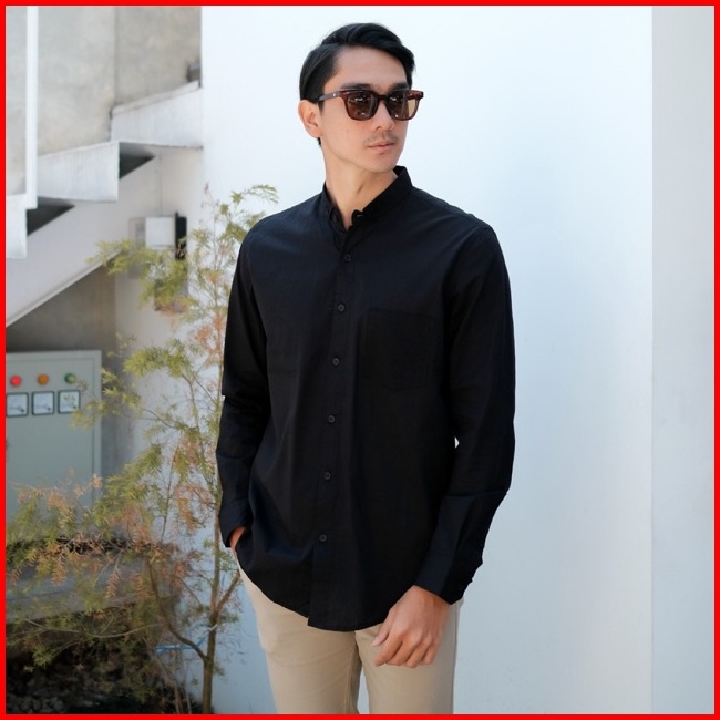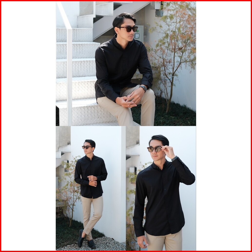 Sanvanina Kemeja Polos Pria Hitam Simple Black Basic E-1077