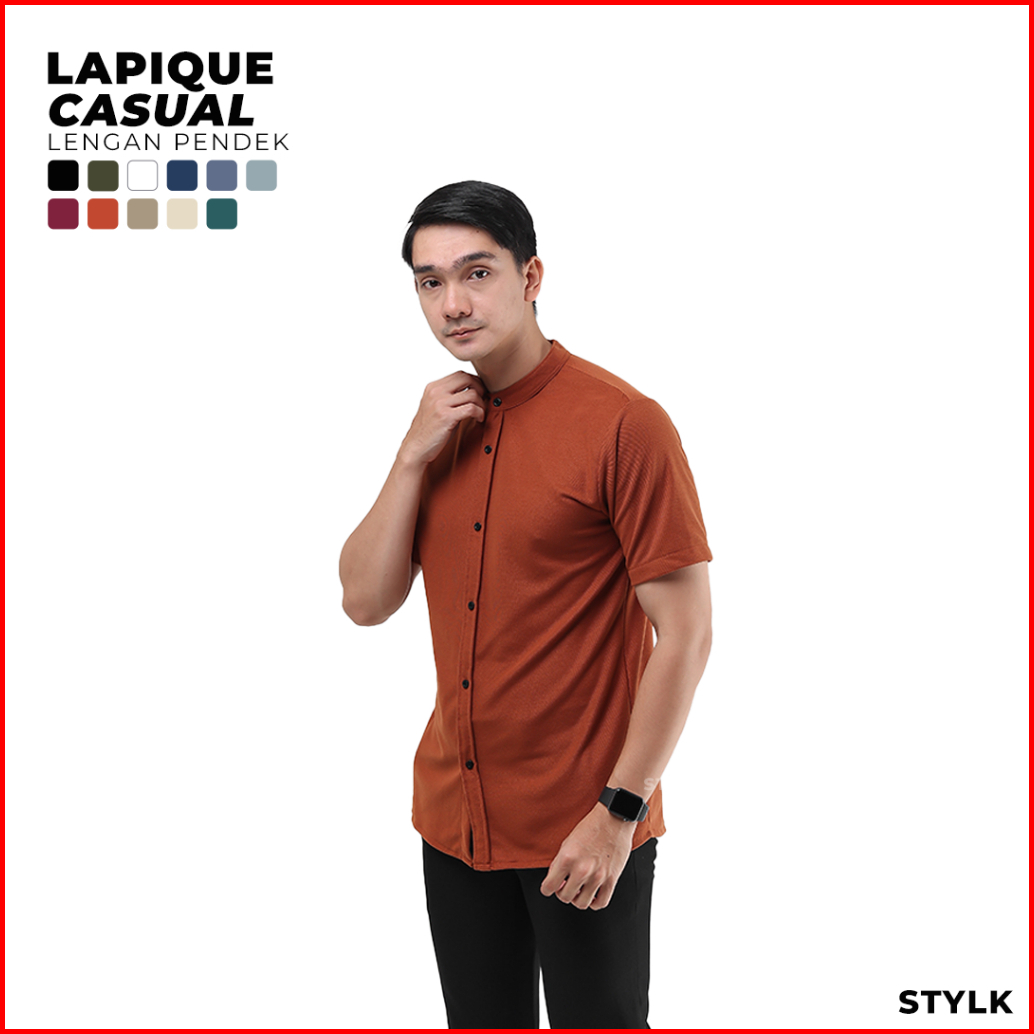 Stylelaki Lapique - Kemeja Coral Pria Casual Lengan Pendek Slim Fit Anti Kusut Nyaman Dan Lembut