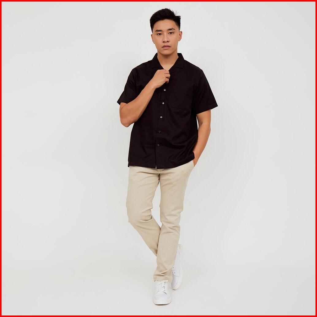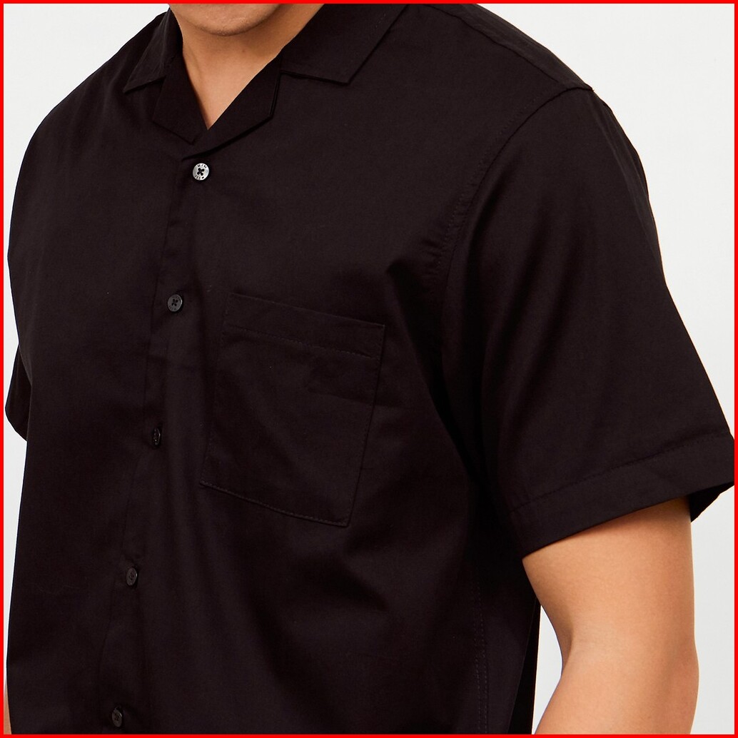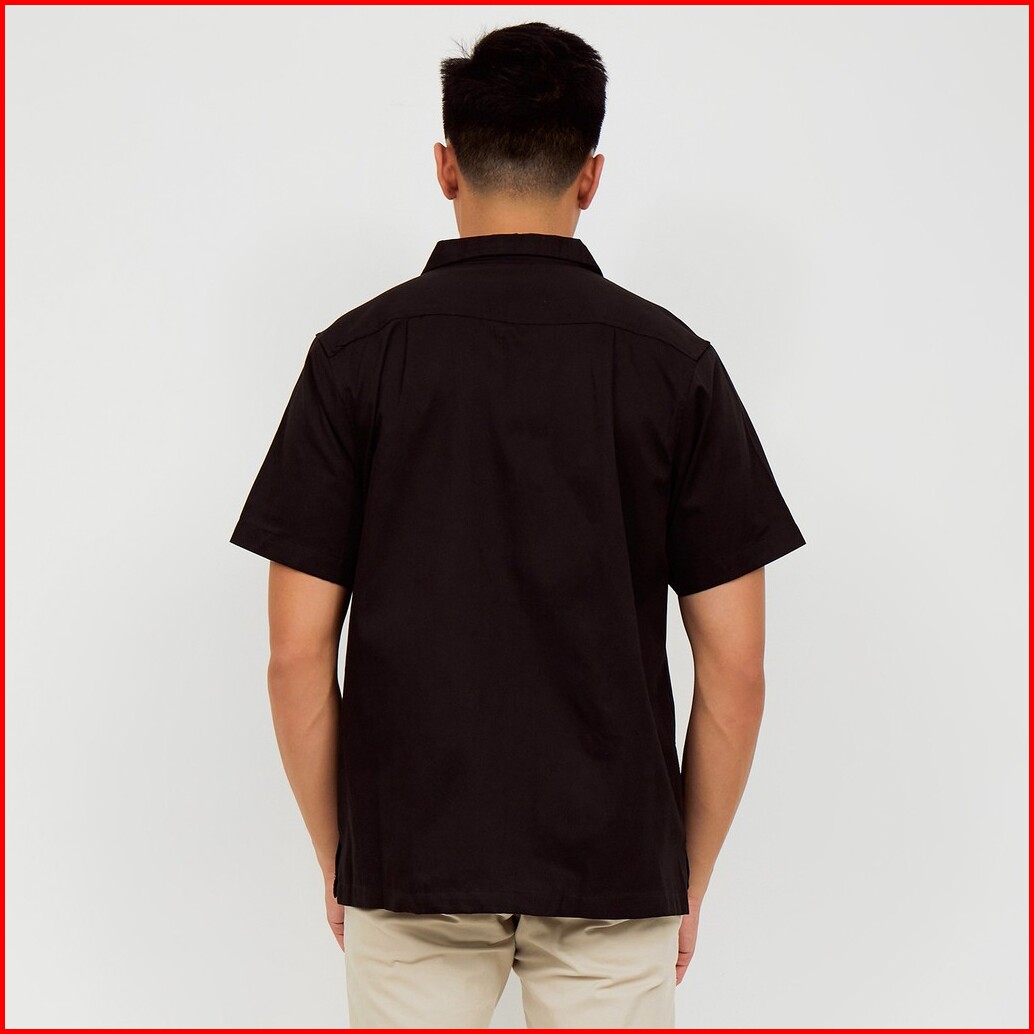 M231 Kemeja Pria Basic Polos Hawaii Oversized Pendek Hitam 2190f
