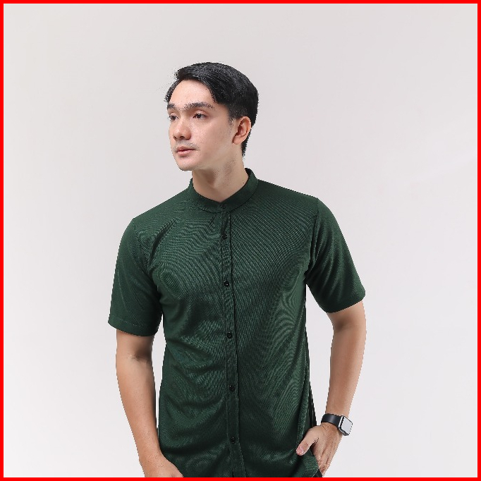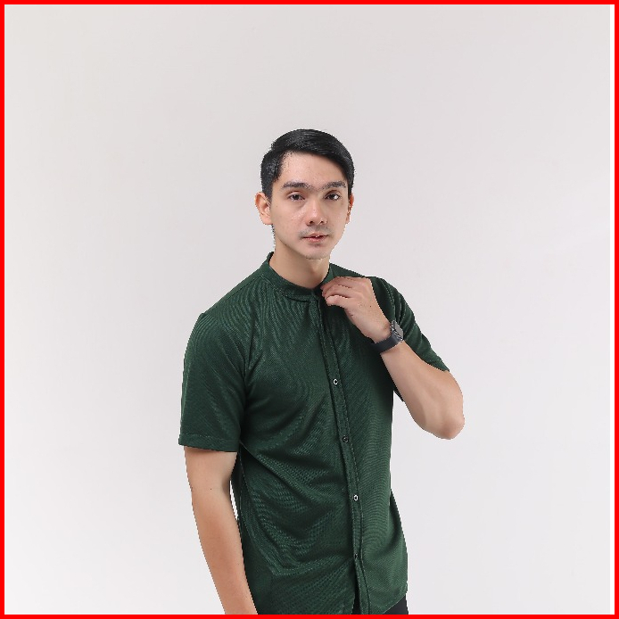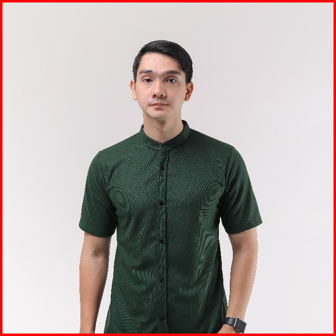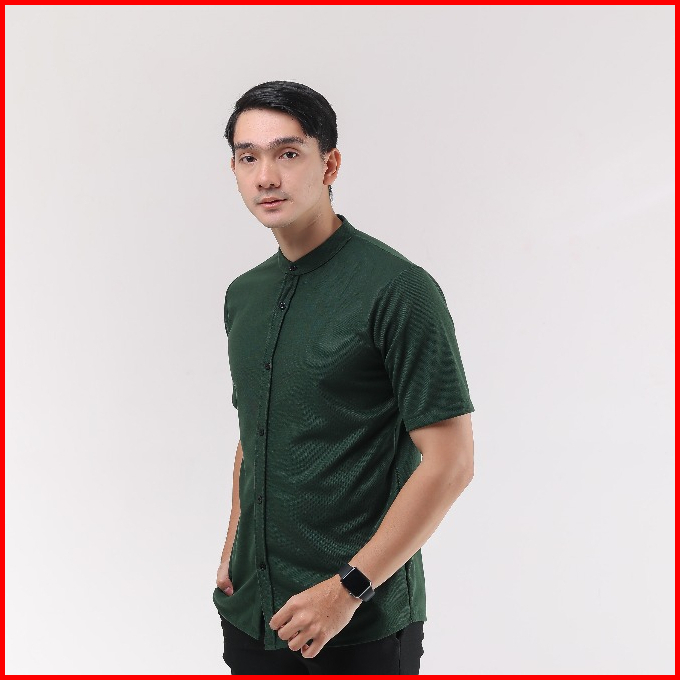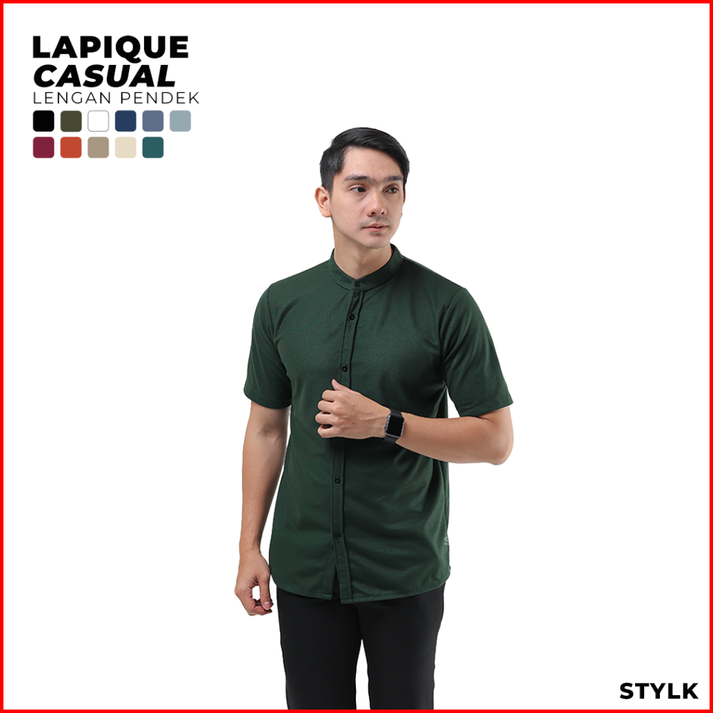 Stylelaki Lapique - Kemeja Hijau Botol Pria Casual Lengan Pendek Slim Fit Anti Kusut Nyaman Dan Lembut
