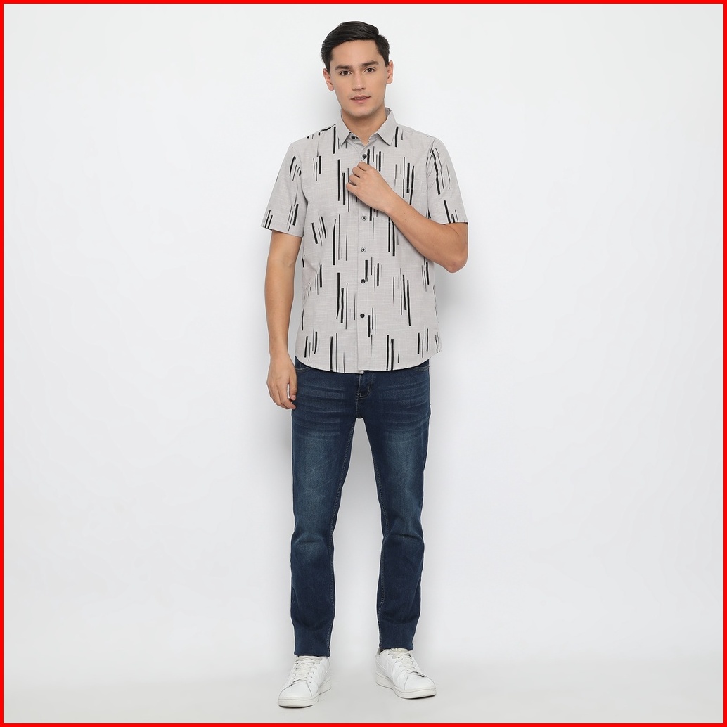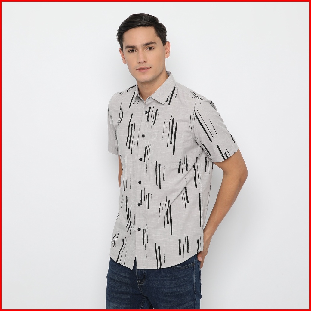Platini Kemeja Motif Pria Lengan Pendek Abu 132157