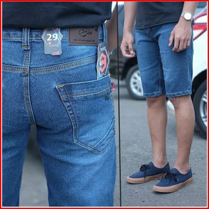 Celana Jeans Pendek Pria Laki Laki Cowo Cowok Jins Denim Celana Murah Dewasa Distro Straight Hitam