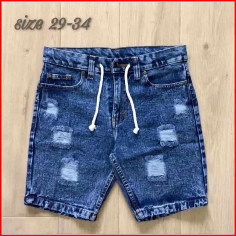 Celana Jeans Pendek Sobek Pria Wisker Jeans Pendek Ripped Robek Pria Premium