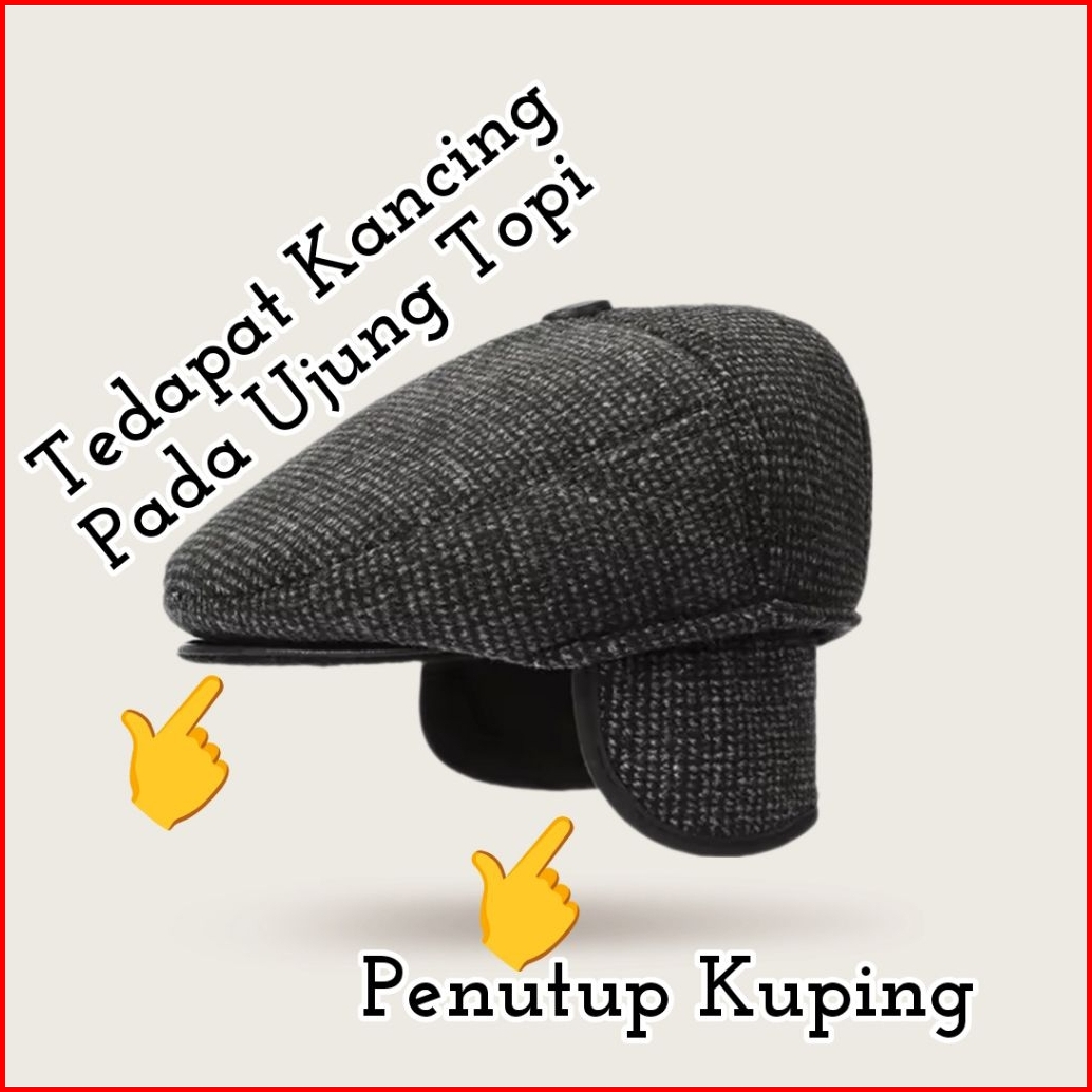 Topi Baret Pria Topi Golf Topi Painter Hat Tebal Motif Kancing