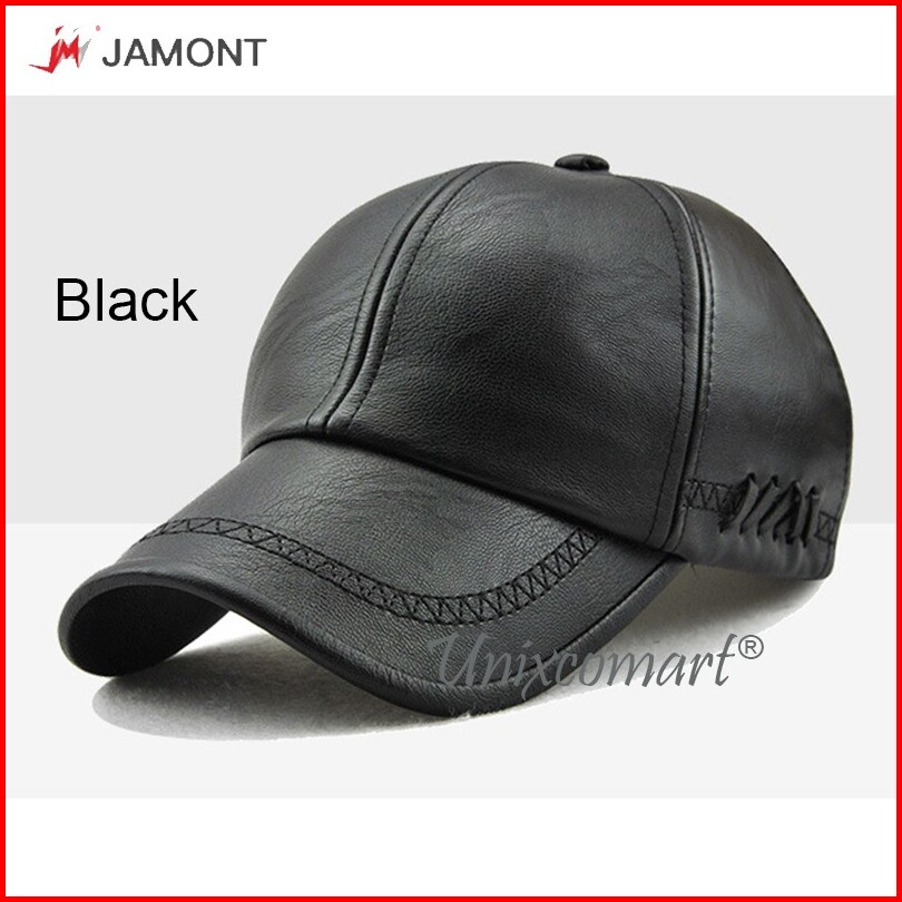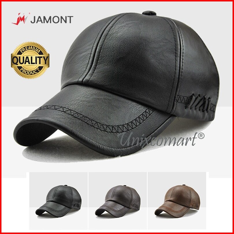 Topi Baseball Jamont Zig Zag Stitch Hat Casual Sport Pria Wanita Topi Kulit Leather Pu