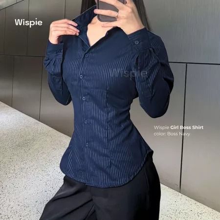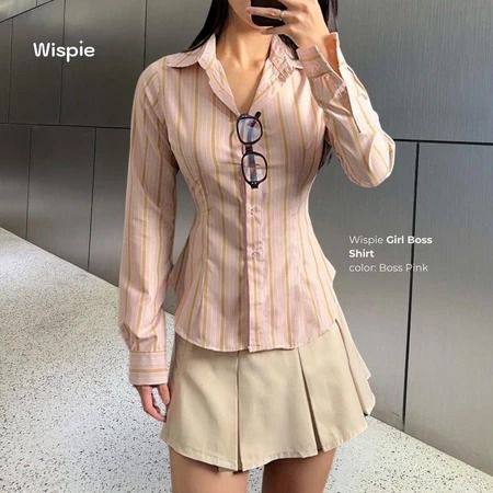 Wispie Girl Boss Fitted Shirt | Kemeja kerja wanita fit garis stripe karet Lembut pink hijau biru
