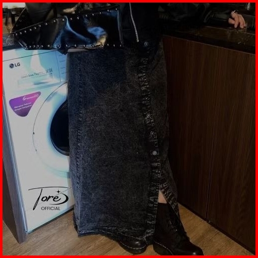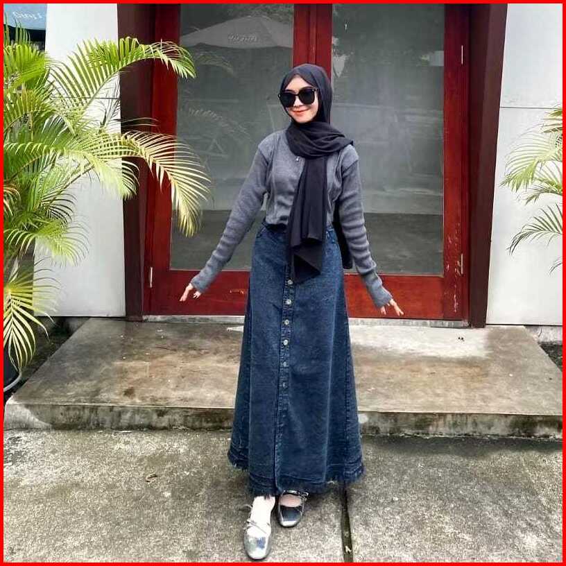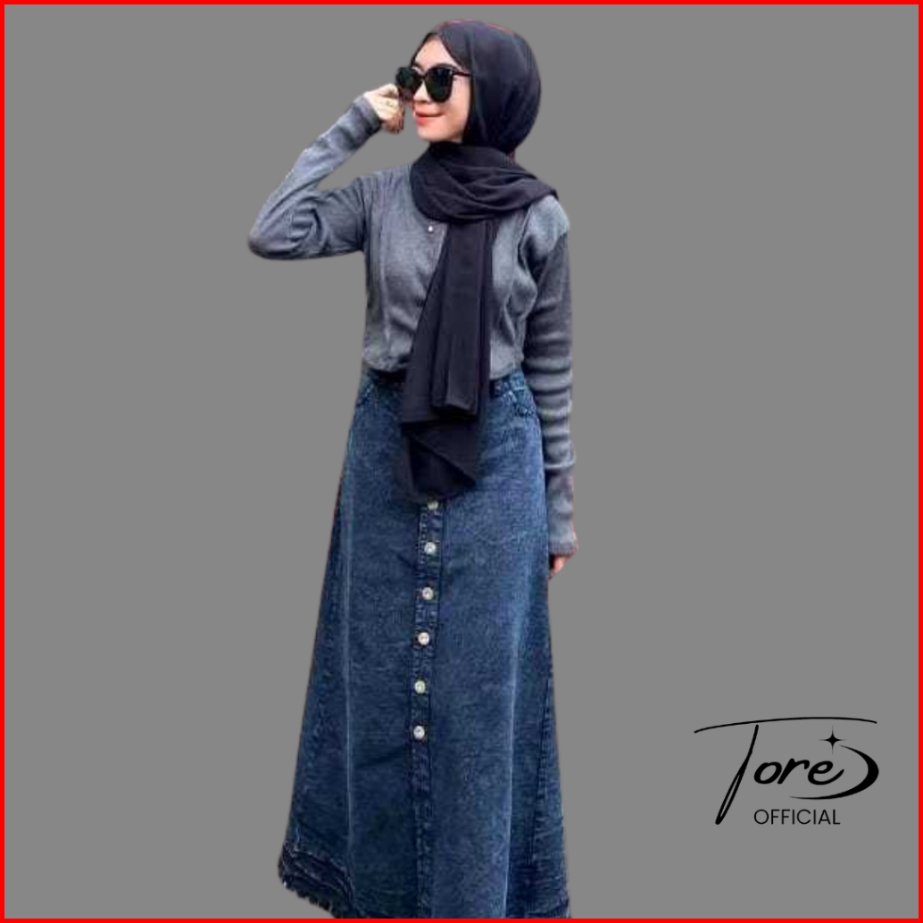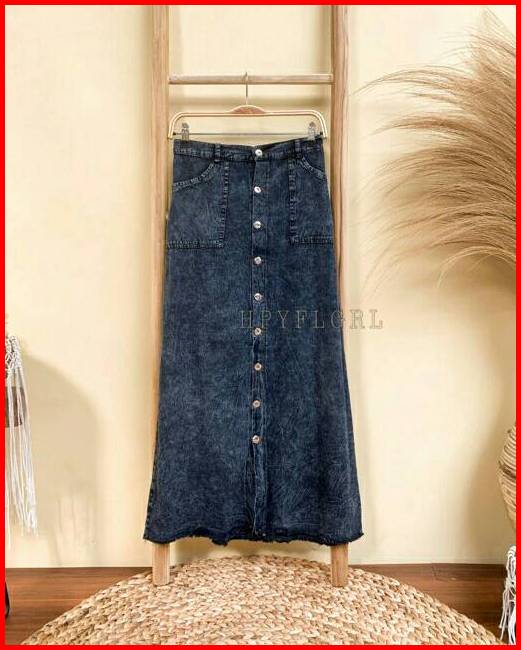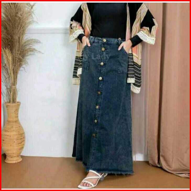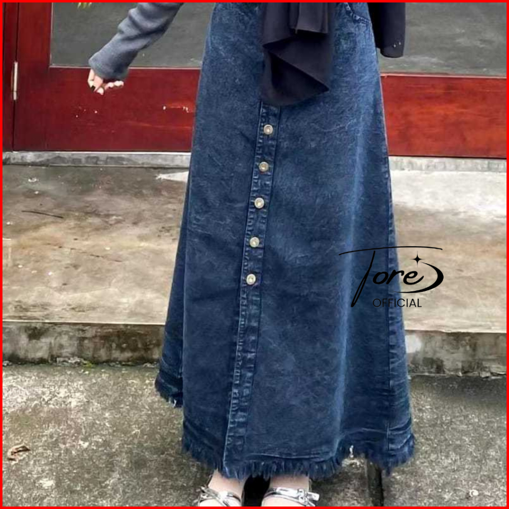 Tore- Rok Button Jeans Panjang Kancing Depan Up Maxi Skirt Snow Lady
