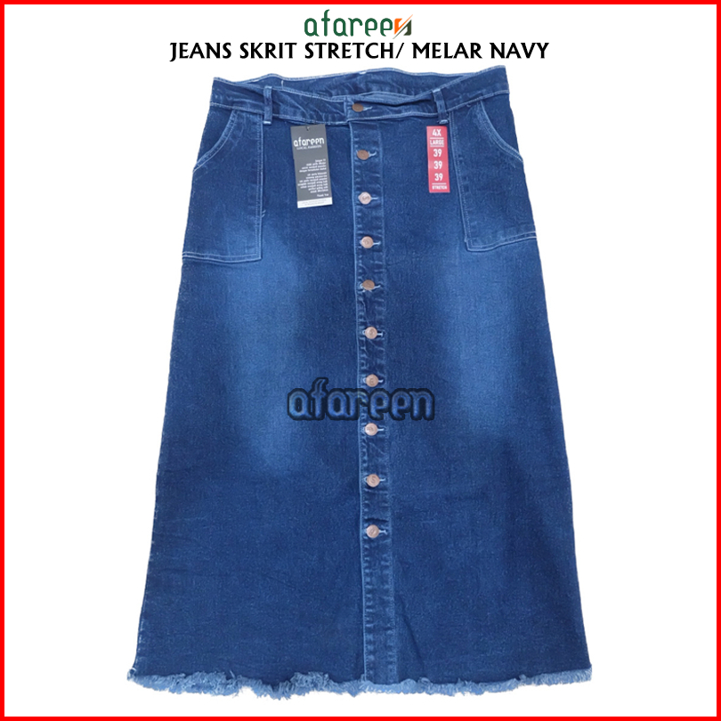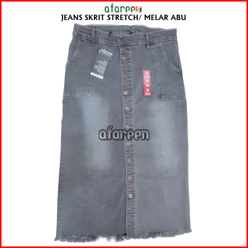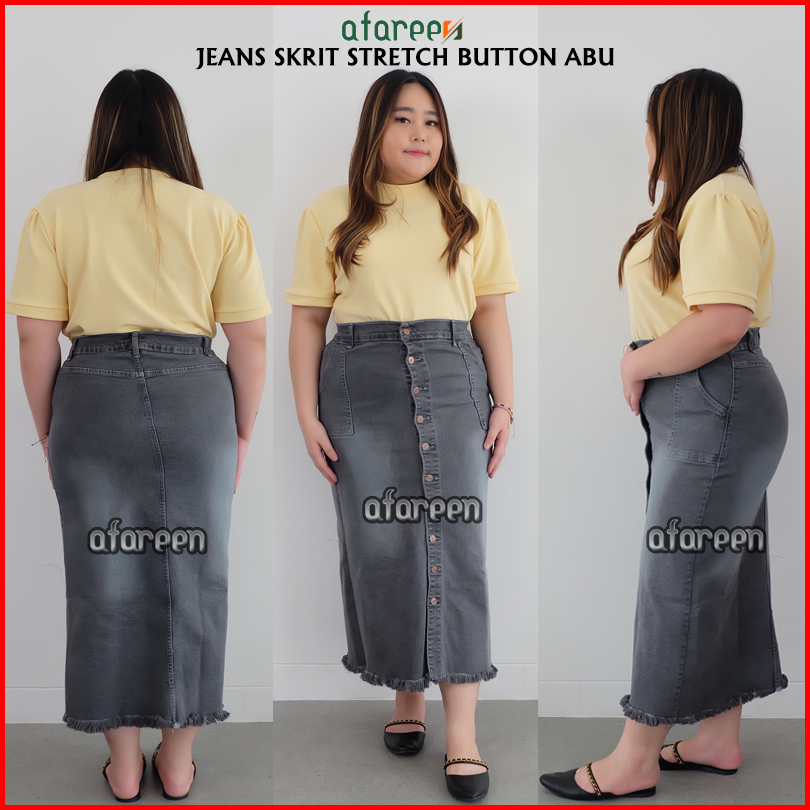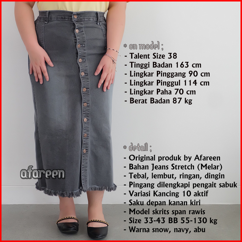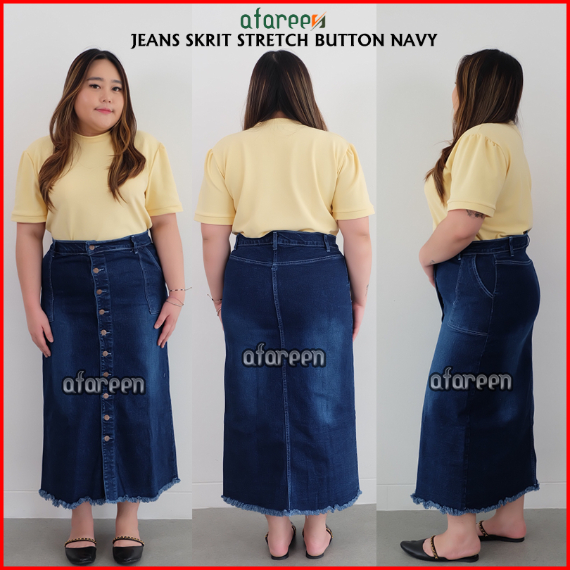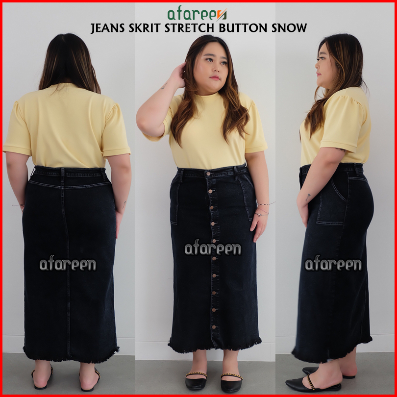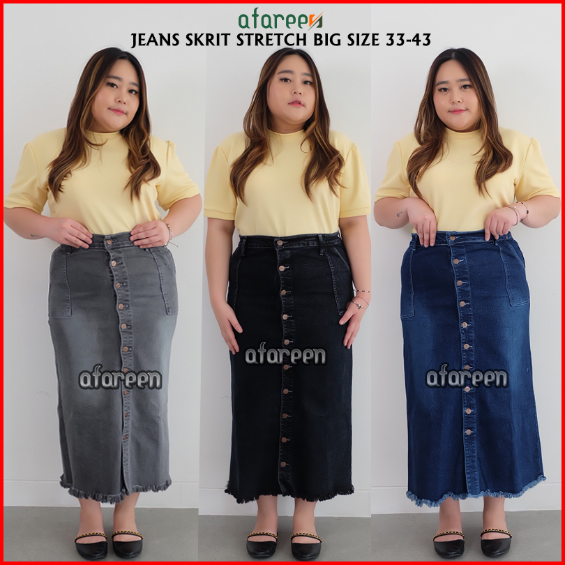Afareen - Rok Jeans Panjang Kancing Depan Jumbo Rok Jeans Wanita Stretch Melar Jumbo Size 29-43