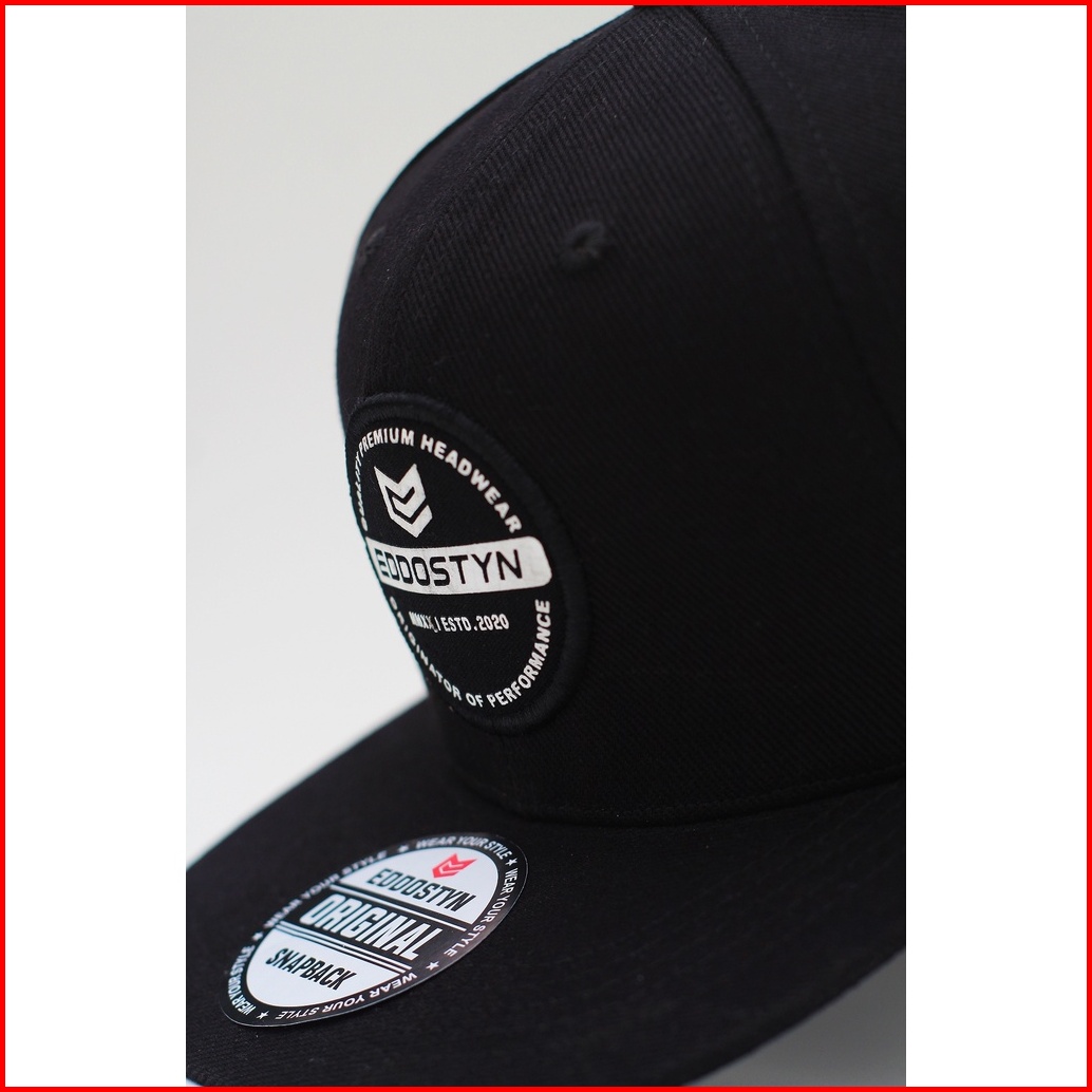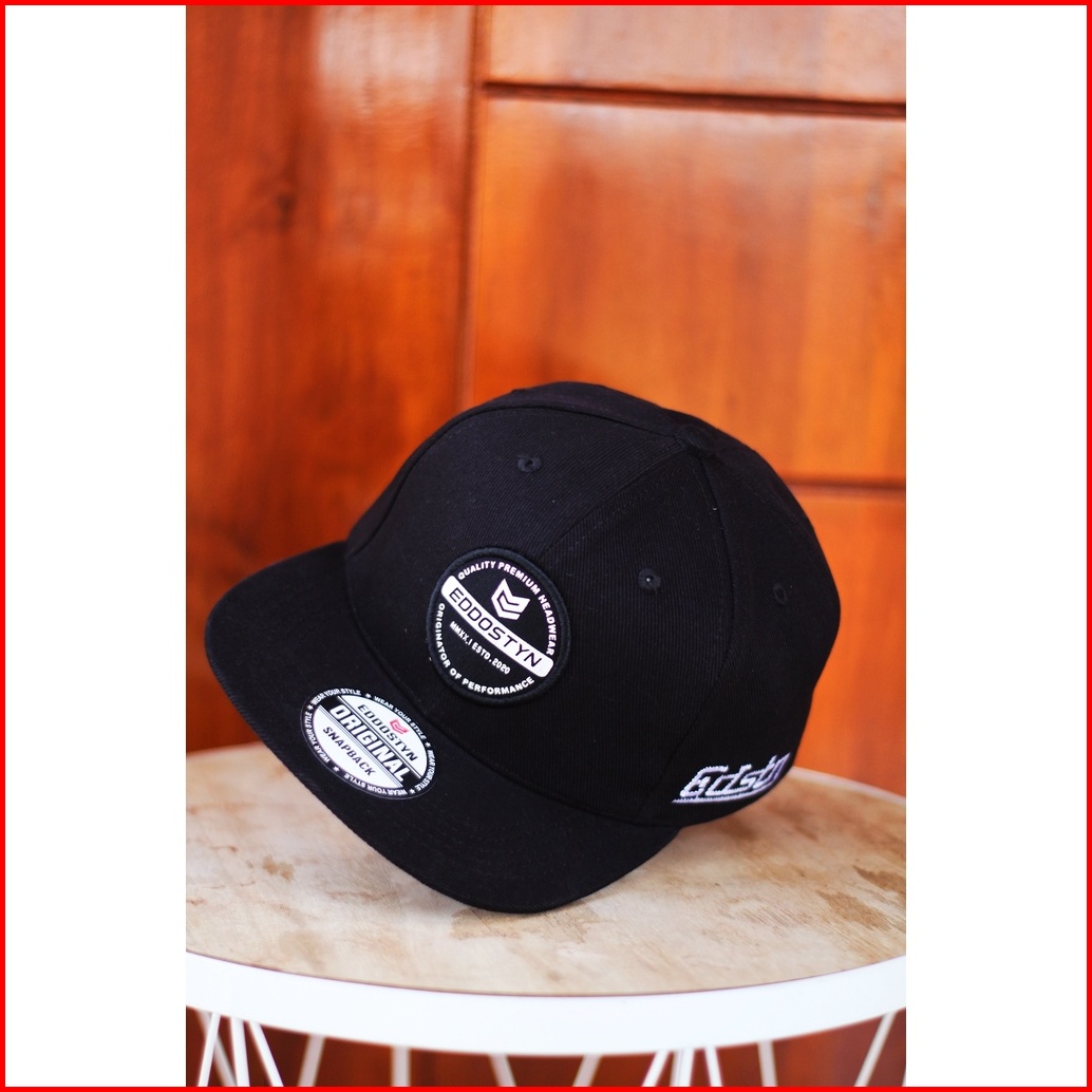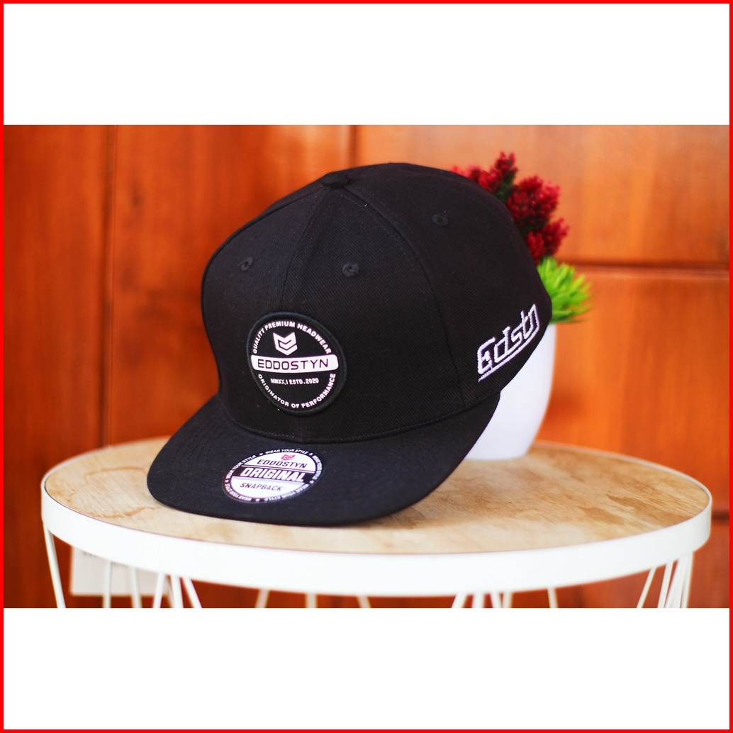 Topi Snapback Hip Hop Original Distro Premium Pria Dewasa Bordir Eddostyn Black Apl