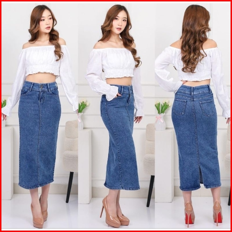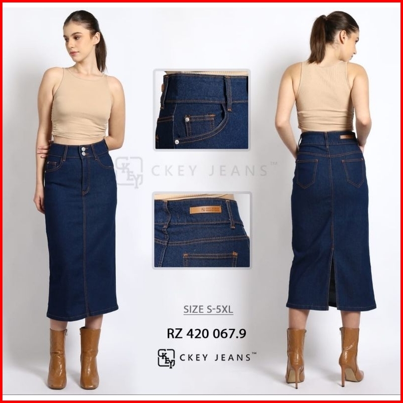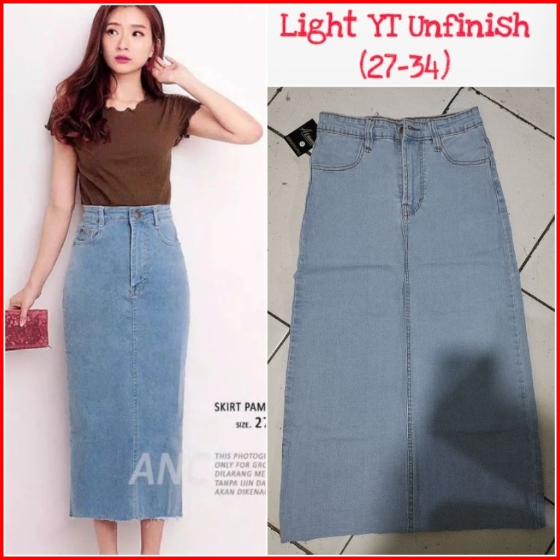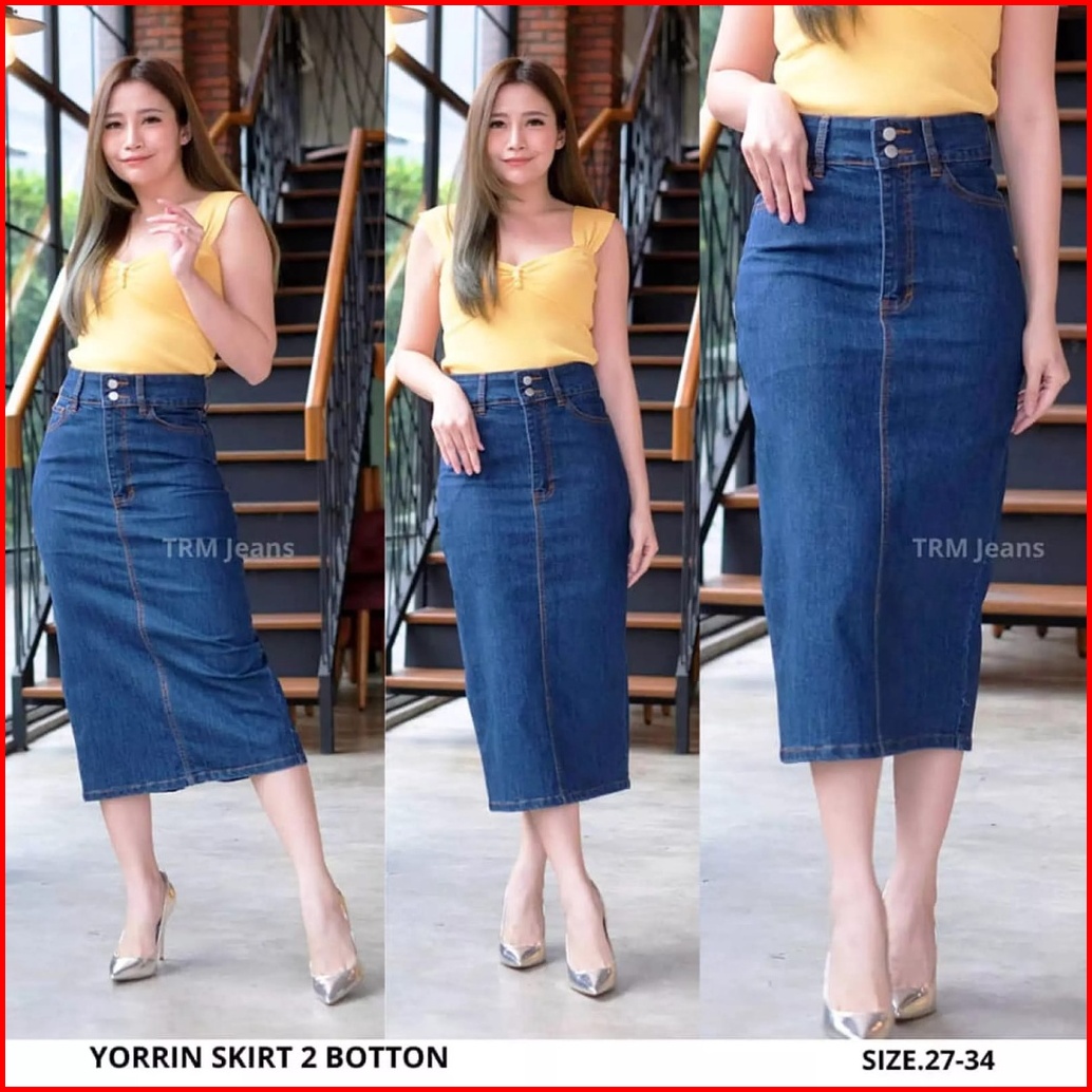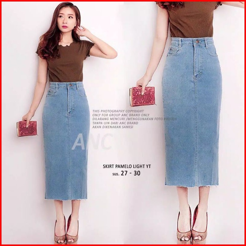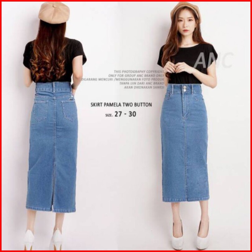 Skirt Midi Jeans Pamela Light Navy Span Two Button Uk.27-34 Rok Belt Kantor Hitam Jeans Best Seller
