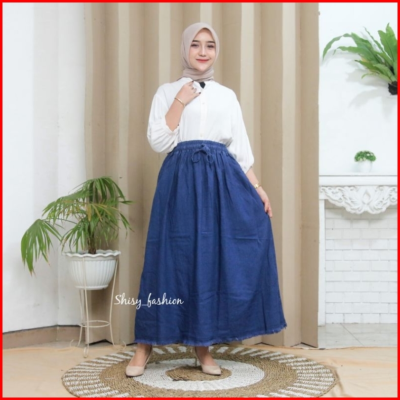 Rok Jeans Panjang Polosan Jumbo Tali Aktif Rok Panjang Jeans Jumbo Polosan Tali Aktif
