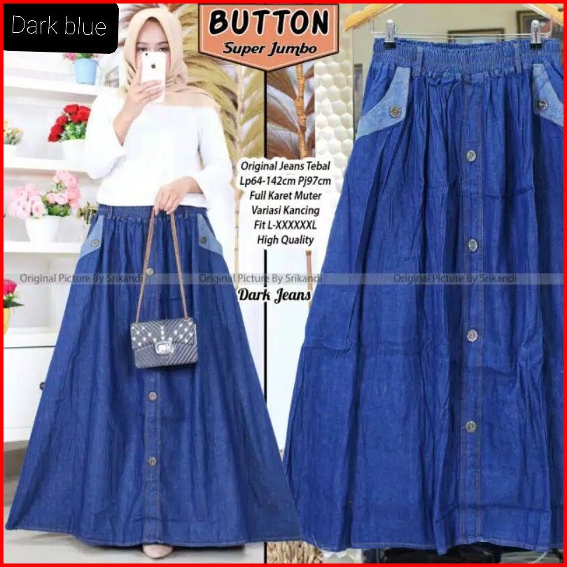 Rok Jeans Panjang Wanita Super Jumbo Extra Rok Jeans Wanita Extra Jumbo Kancing