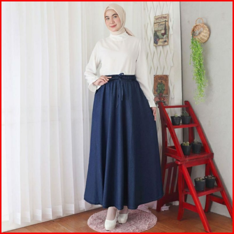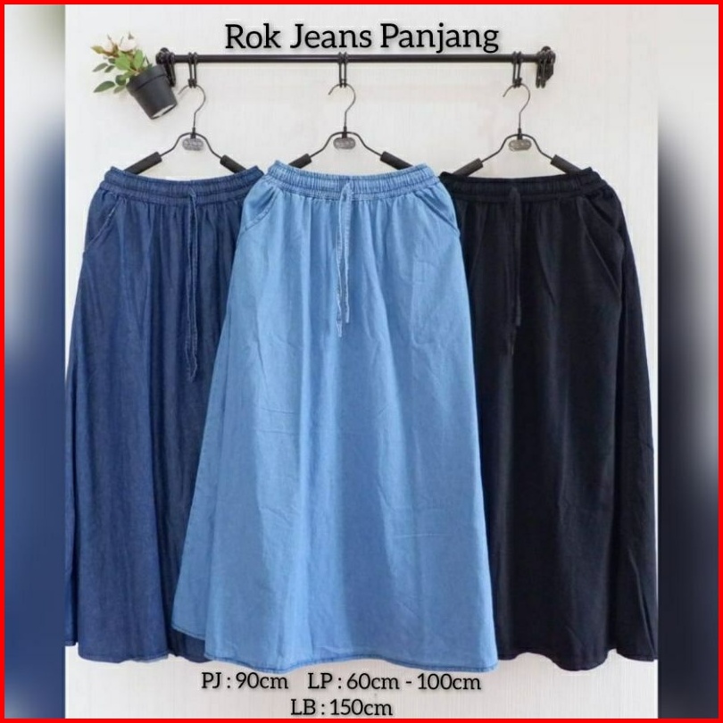 Rok Jeans Jumbo Polosan Tali Aktif Rok Jeans Polosan Jumbo Tali Aktif Murah