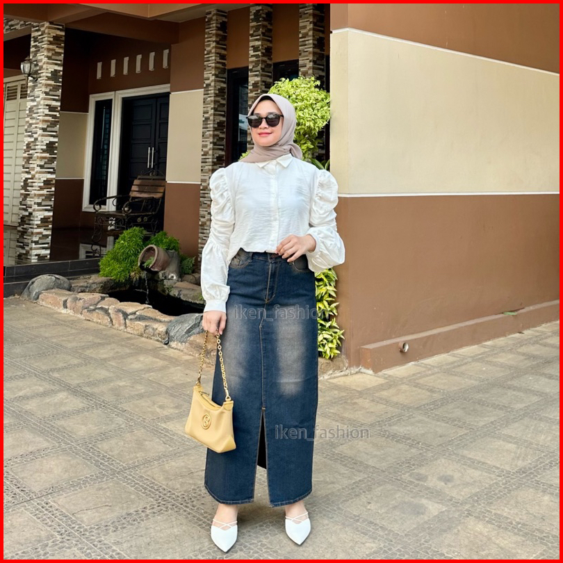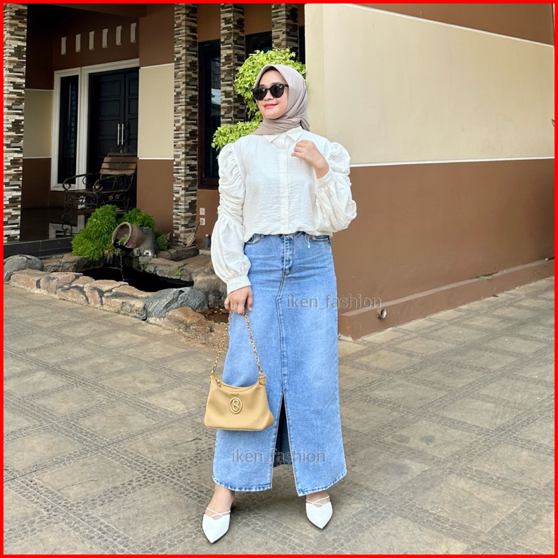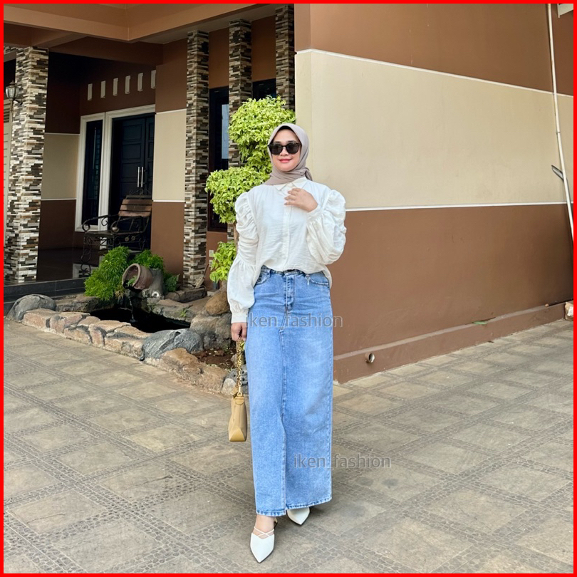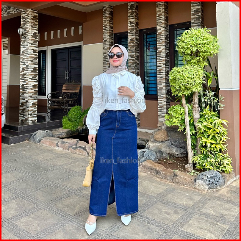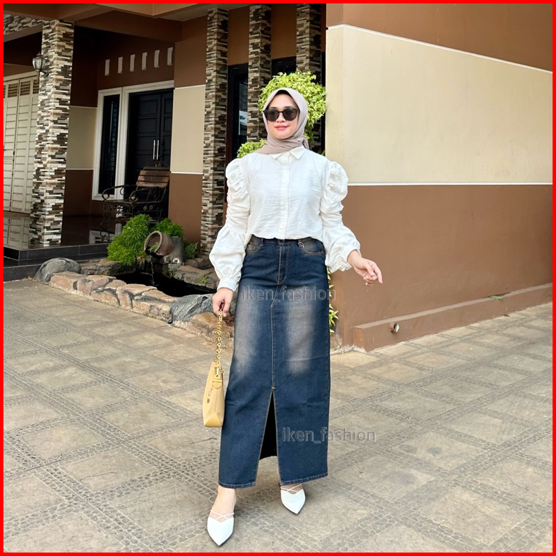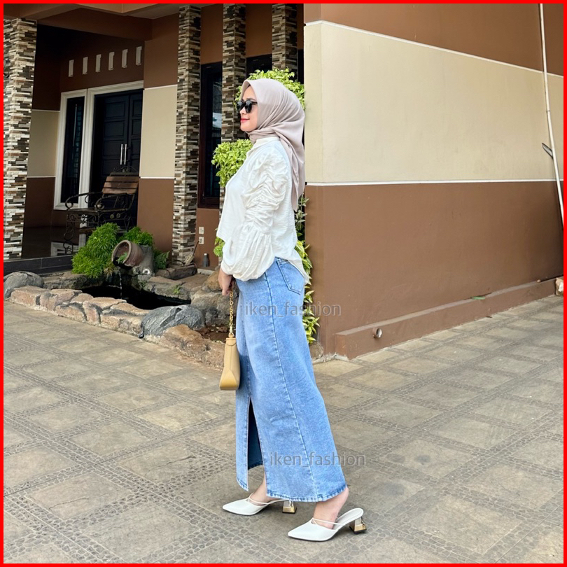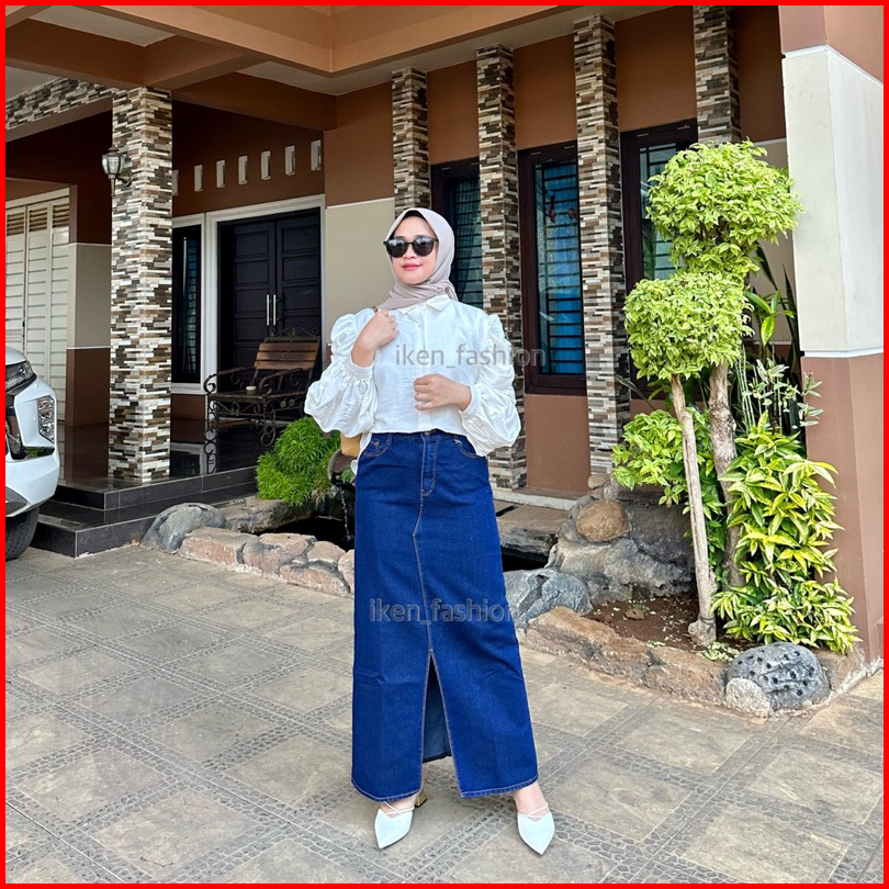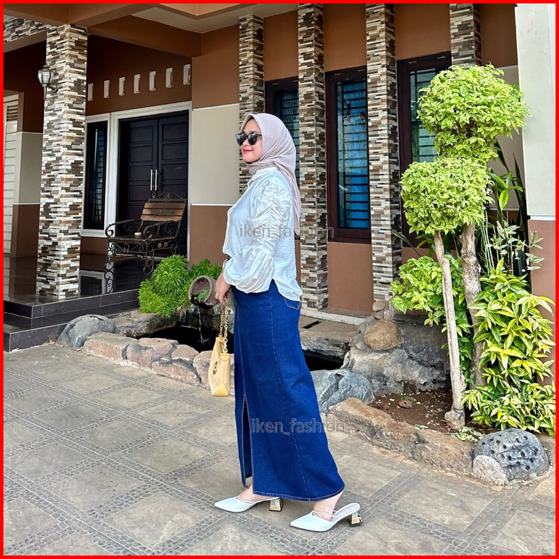 27-38 Rok Belah Depan Jeans Highwaist Slit Maxi Skirt Jeans Adele Skirt Anaz Skirt