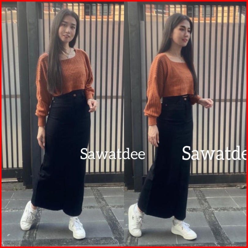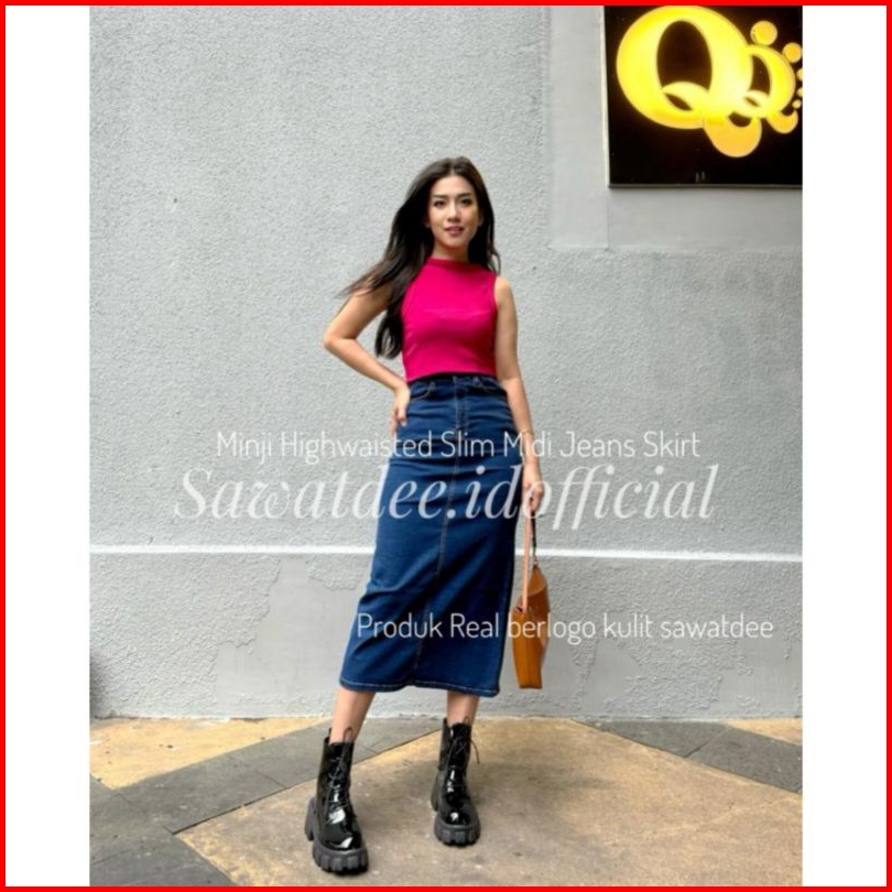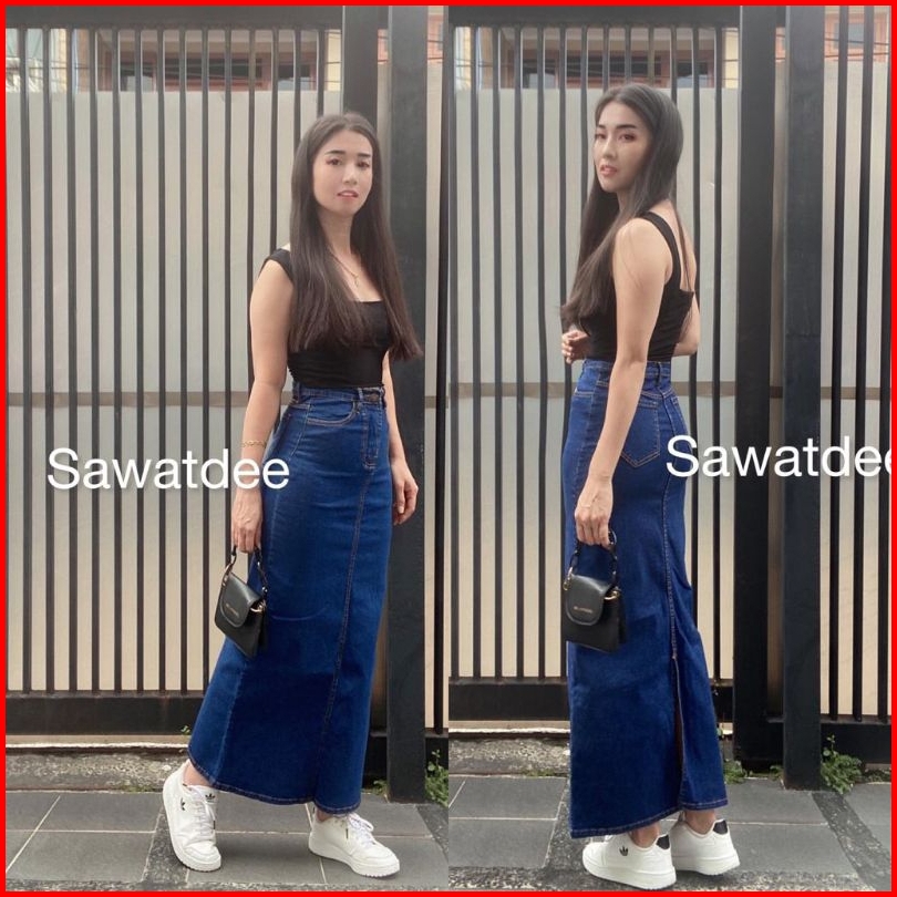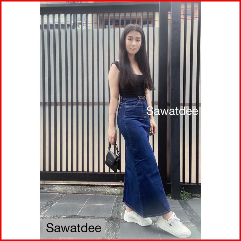 Rok Jeans High Waist Panjang Jumbo Rok Span Panjang Rok Kekinian