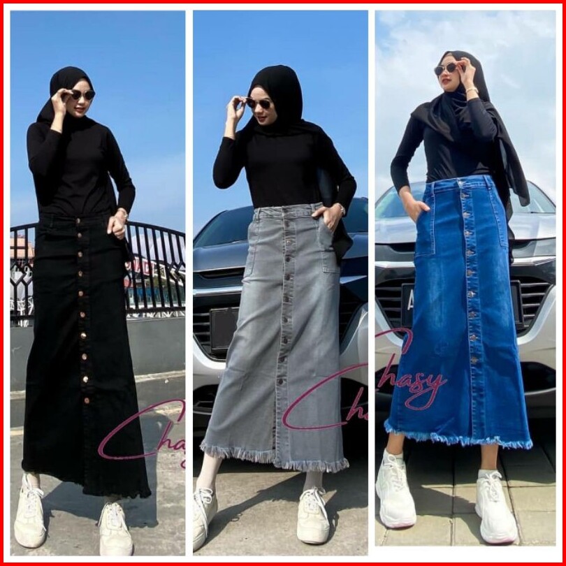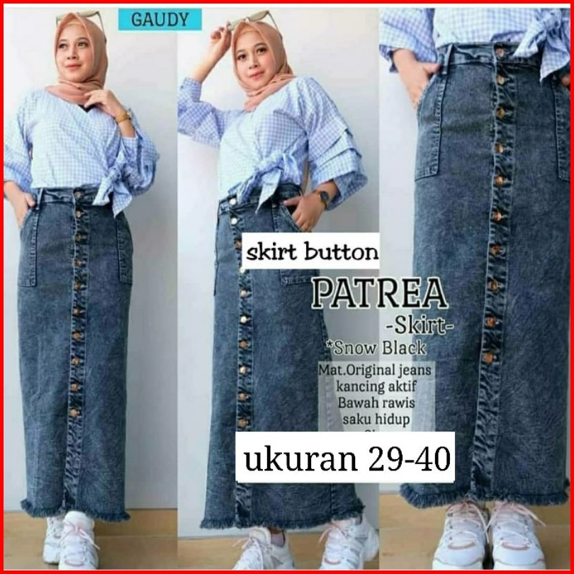 Rok Panjang Gisca Kancing Depan . Rok Jeans Panjang Kancing Depan Murah
