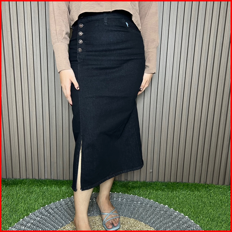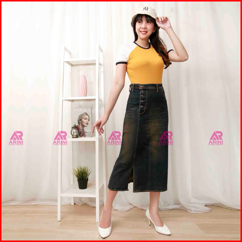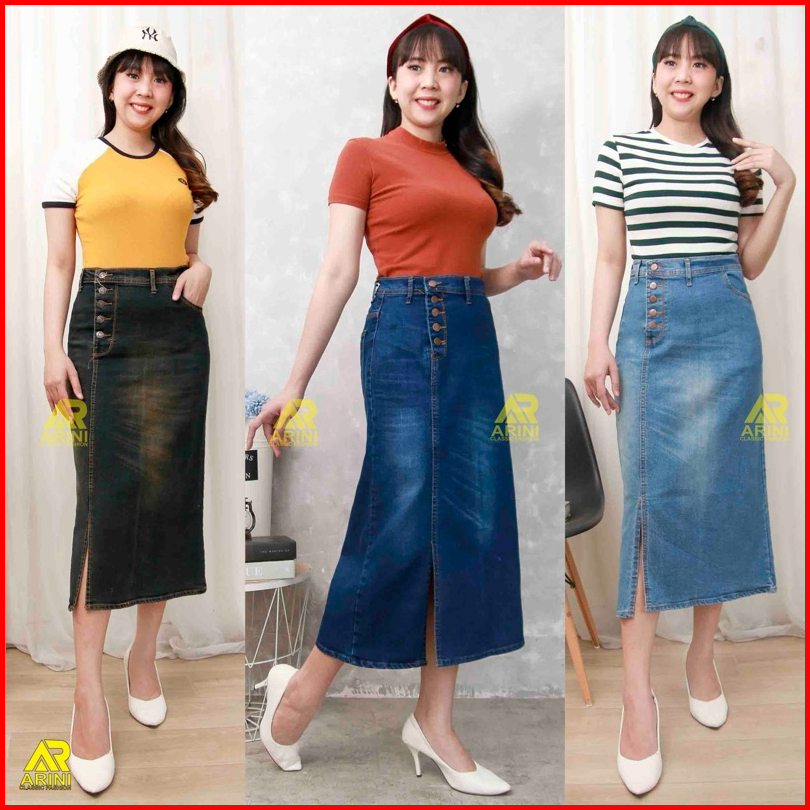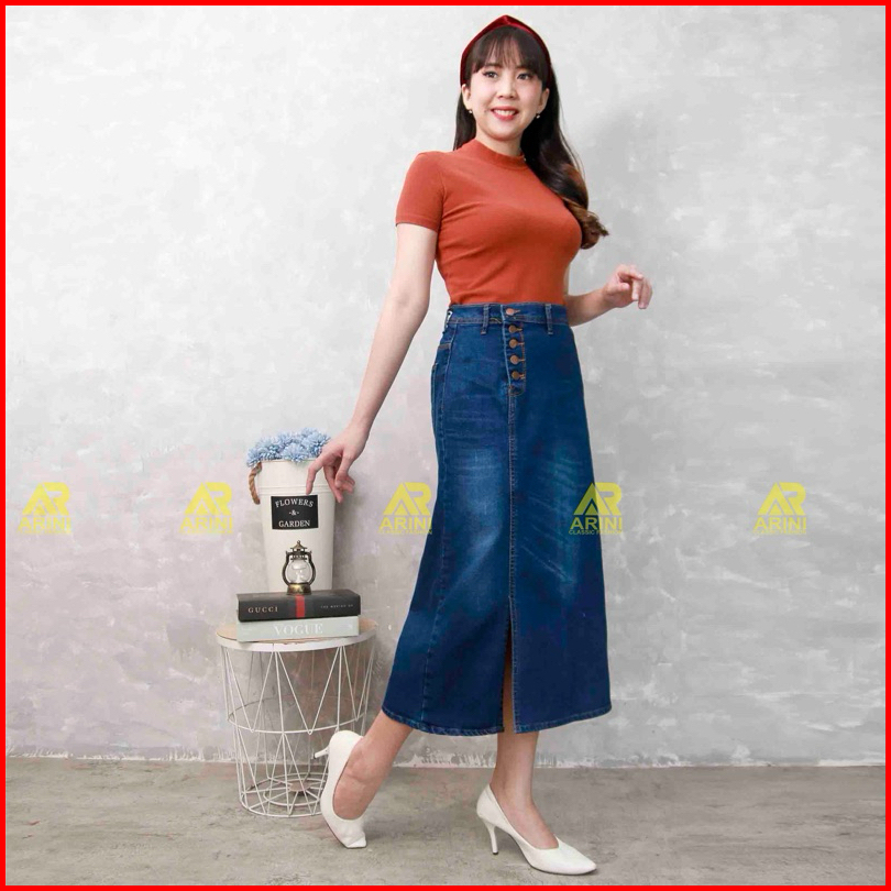 Alesya Skirt Jeans Rok Jeans 7 9 Highwaits Wanita Rok Highwaits Belah Samping
