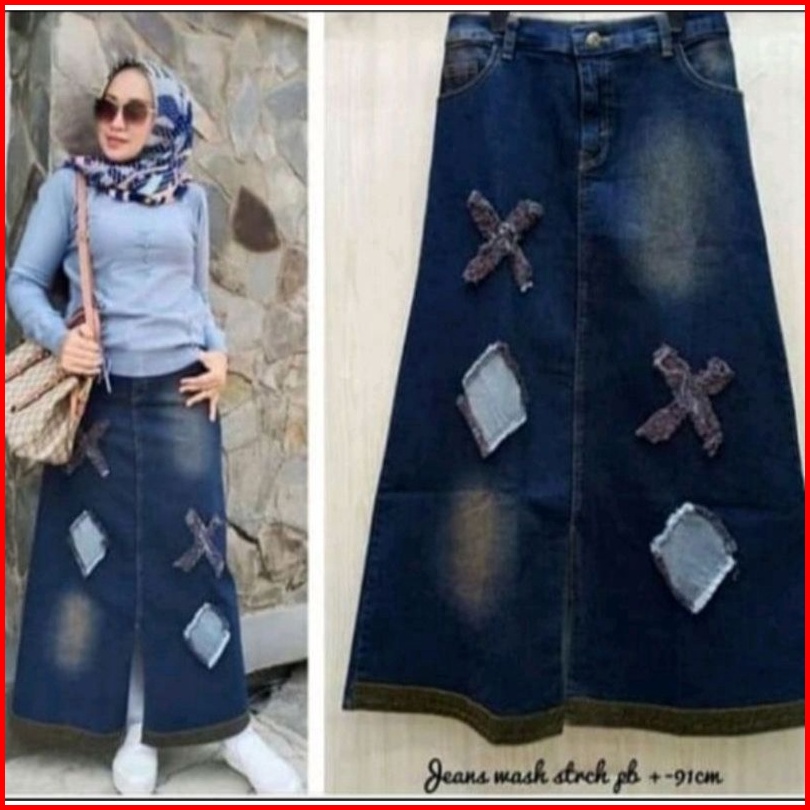Rok Jeans Kekinian Rok Denim Dewasa Rok Wanita Jumbo