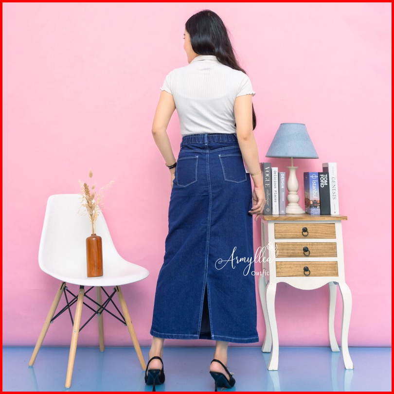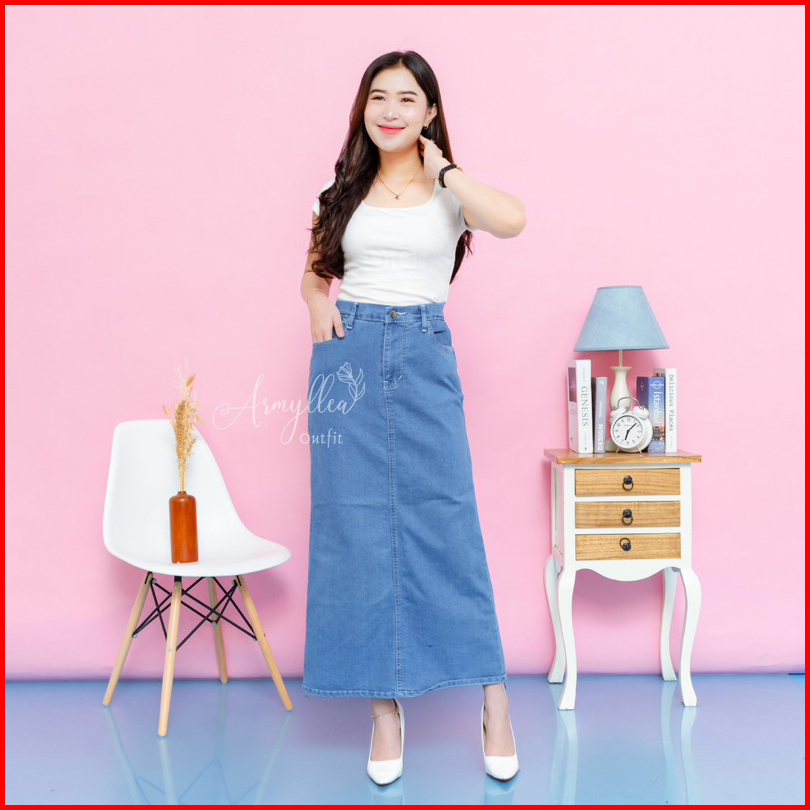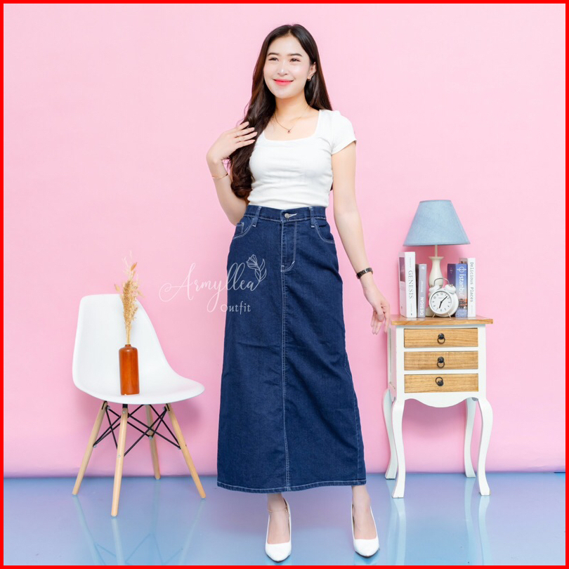 Rok Jeans Panjang Wanita Skirt Jeans Stretch Mulur Nyaman Theana Korean Style Highwaist Jumbo