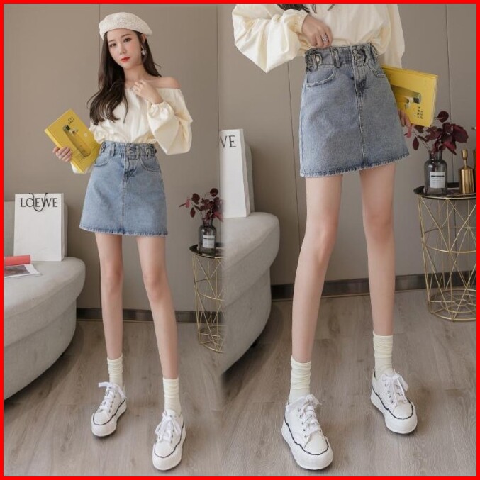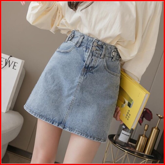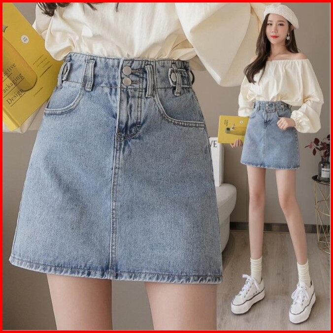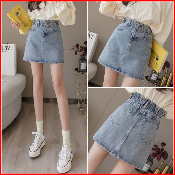 Denim Skirt Rok Pendek Denim Rok Jeans Wanita Fashion Korea Style Rok Musim Panas Pinggang Tinggi