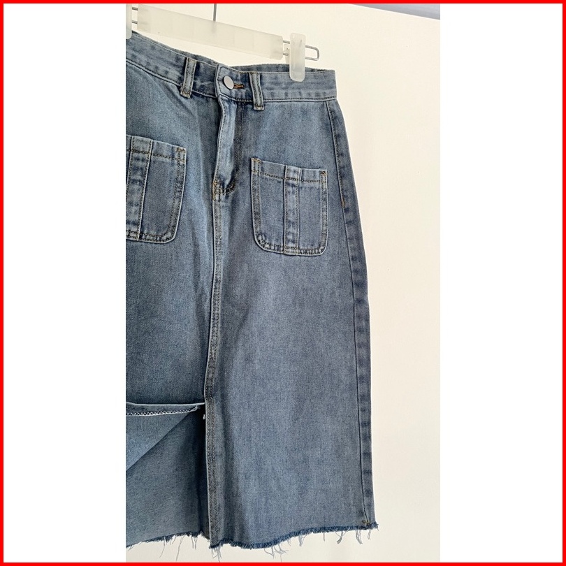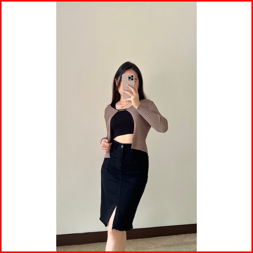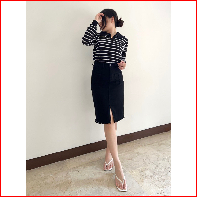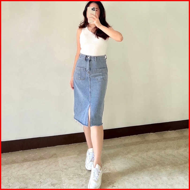 Klavee - Freya Denim Skirt Rok Denim Jeans Wanita Midi Korean Style Skirt