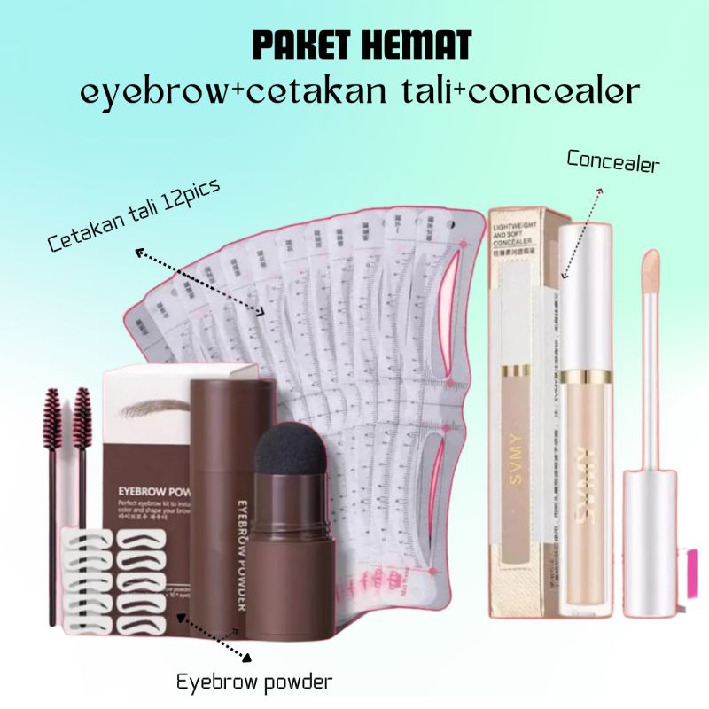 (PAKET NGALIS ISI 3) EYEBROW POWDER CETAKAN ALIS TALI ISI 12 + CONCEALER