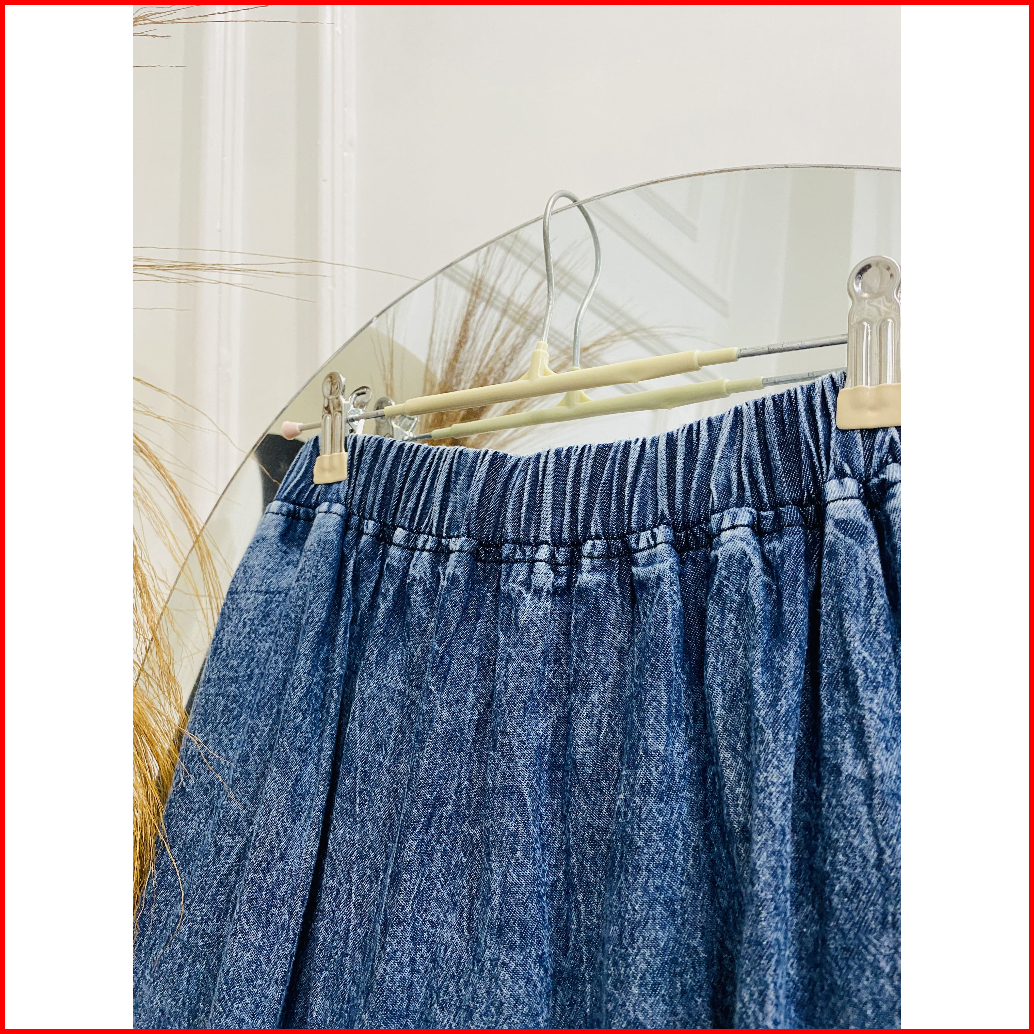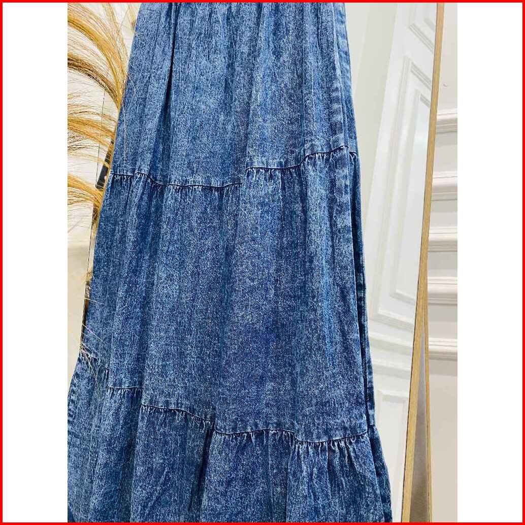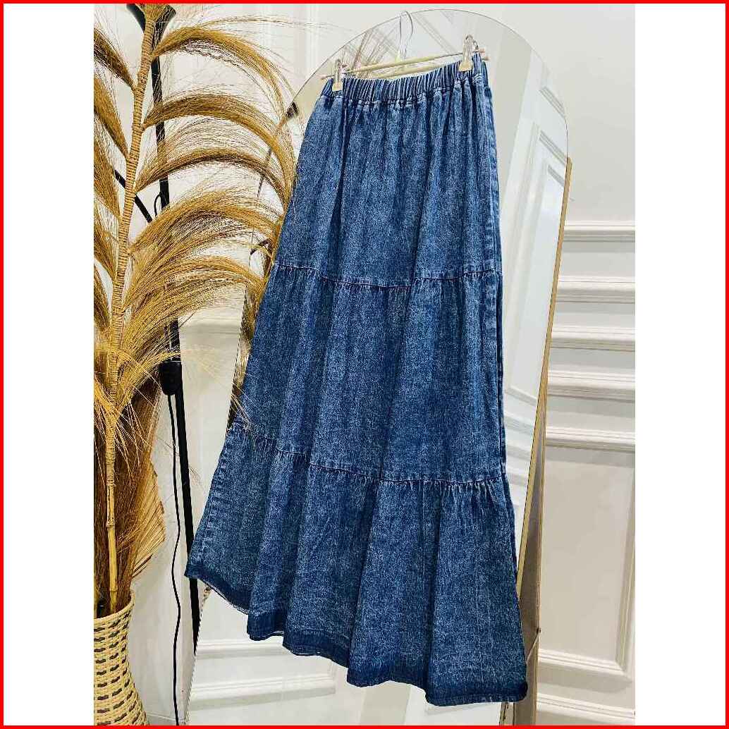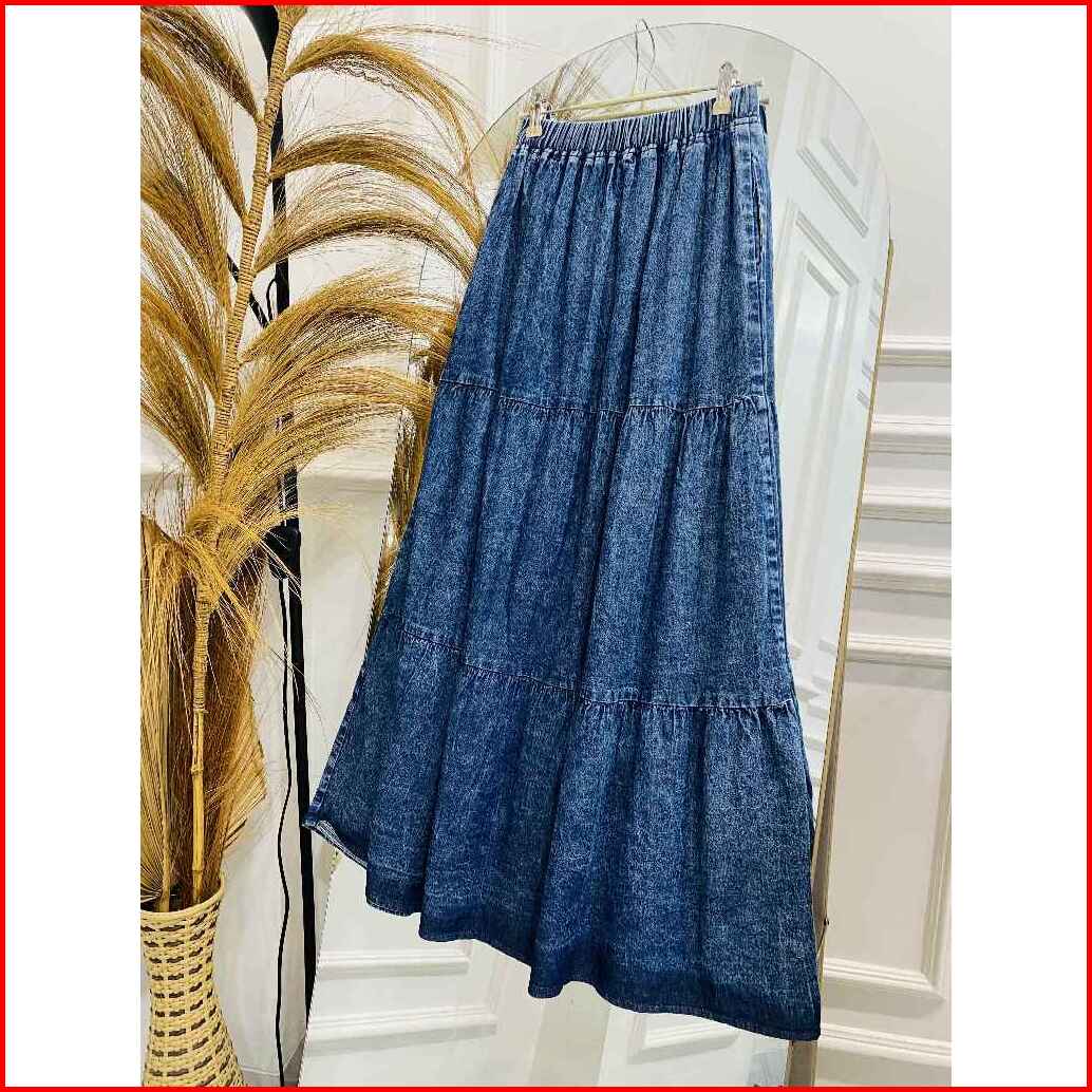 Meltz.id - Rok Jeans Panjang Wanita Dewasa Skirt Susun