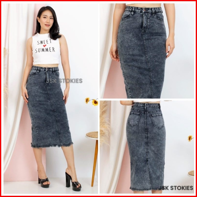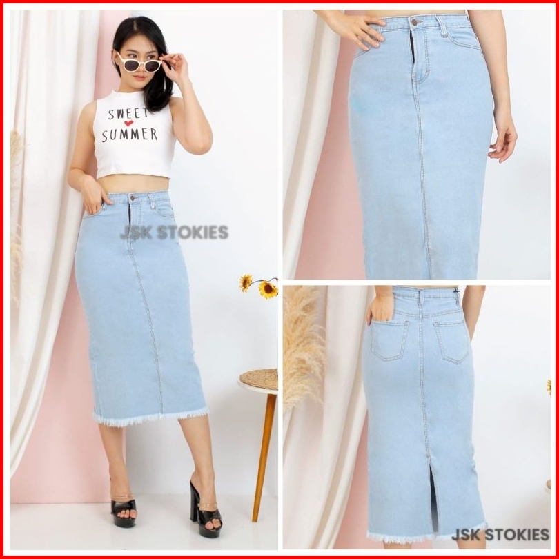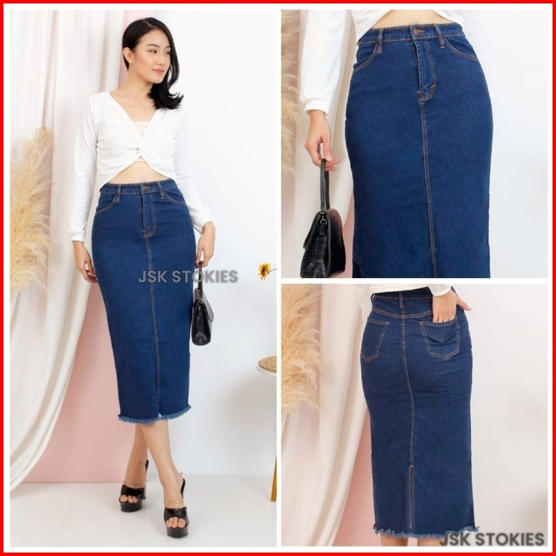 Rok Jeans Wanita Rawis Denim Jeans Stretch