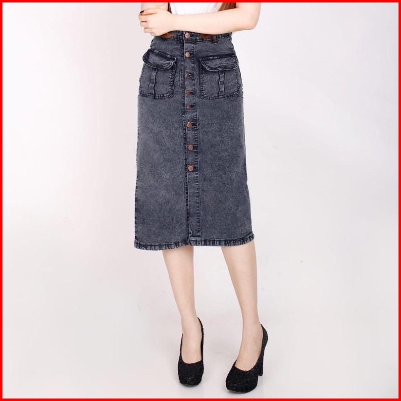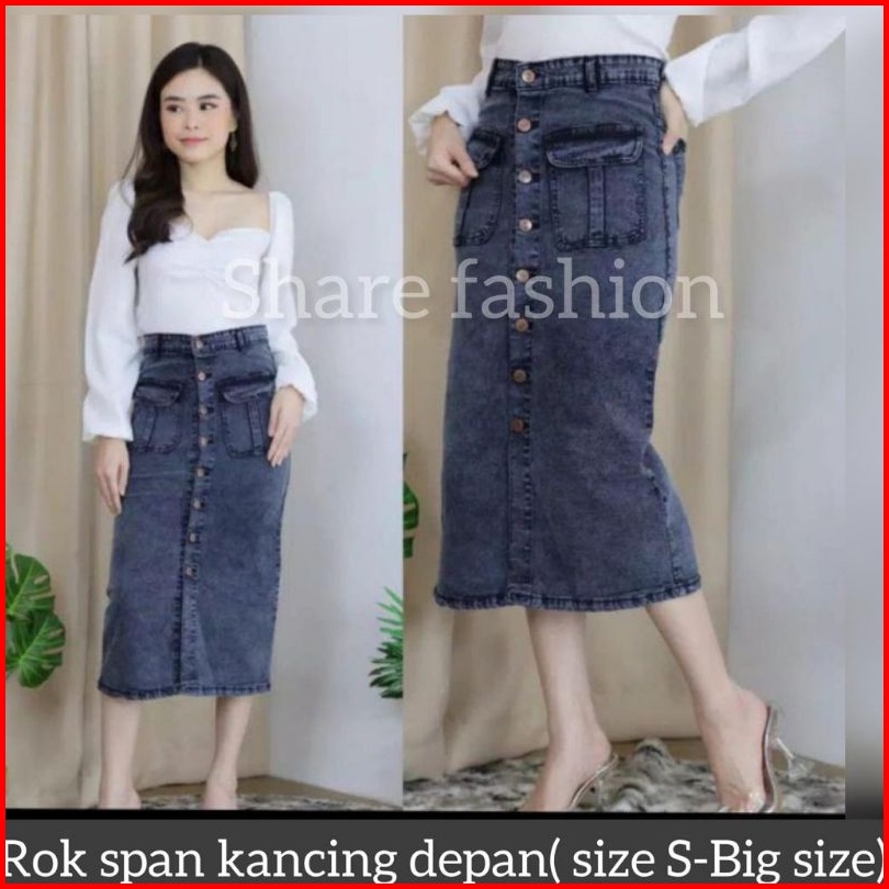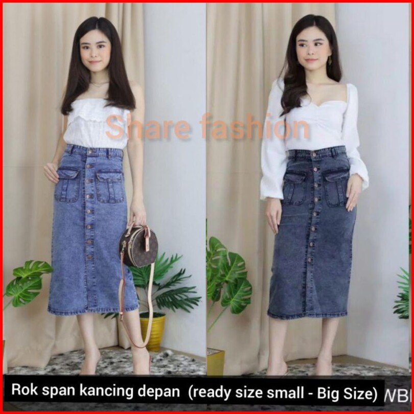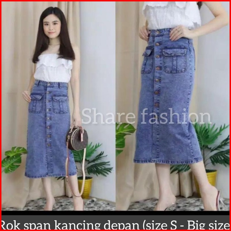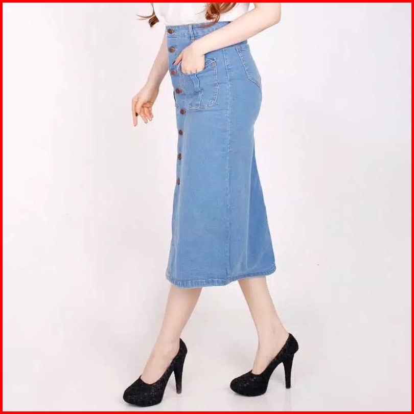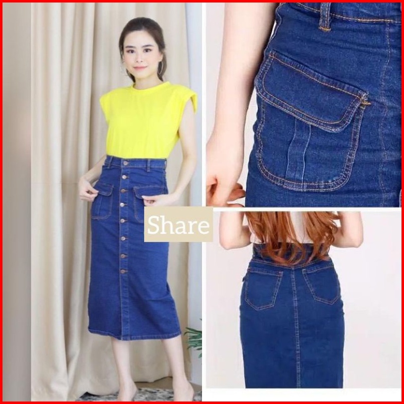 Bisa Rok Kancing Deret Rok Span 7 8 Rok Jeans Premium Rok Kantong Dua