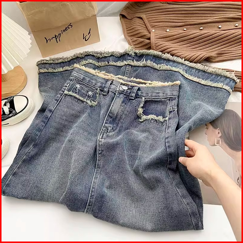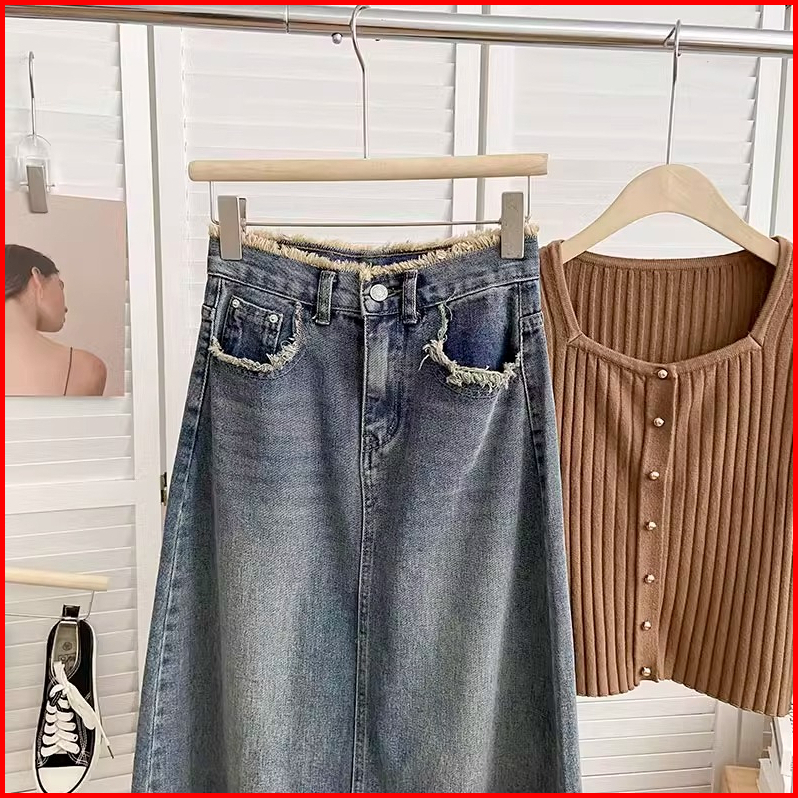 Rawis Rok Jeans A-line Highwaist Rok Jeans Wanita Rok Midi Korea Style
