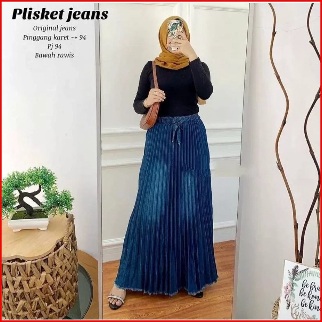 Rok Plisket Wanita Dewasa Jeans Ori Bb 40-75