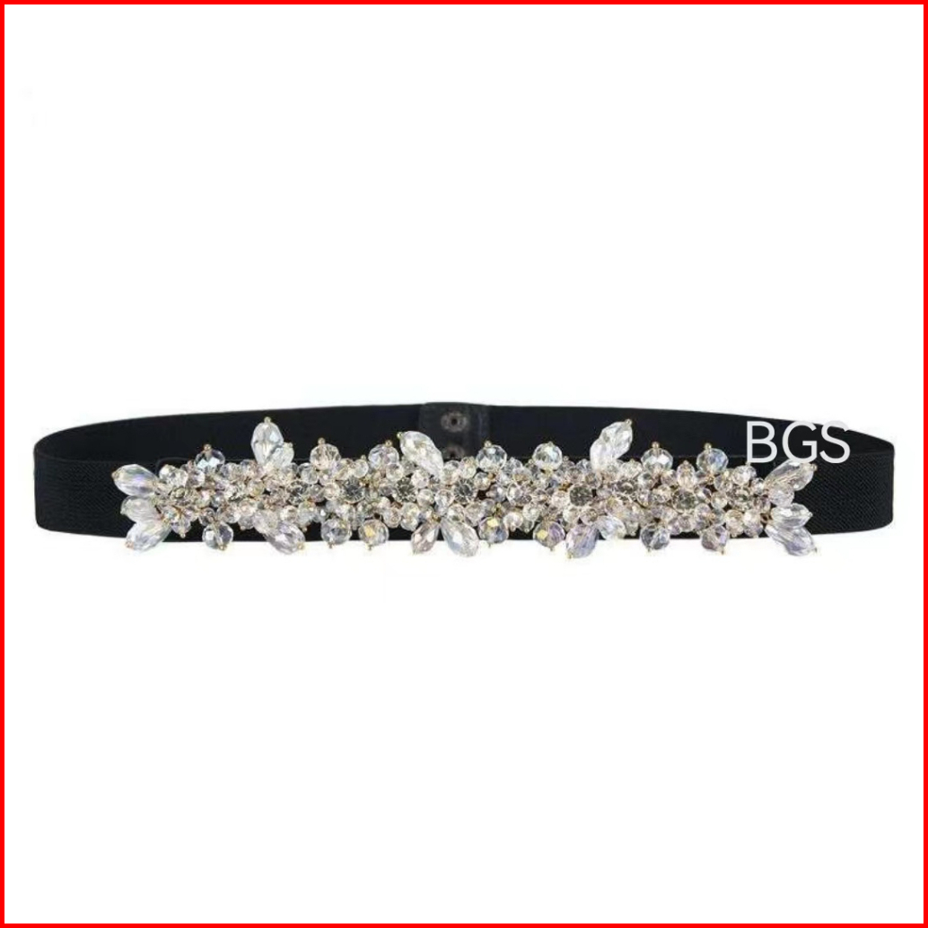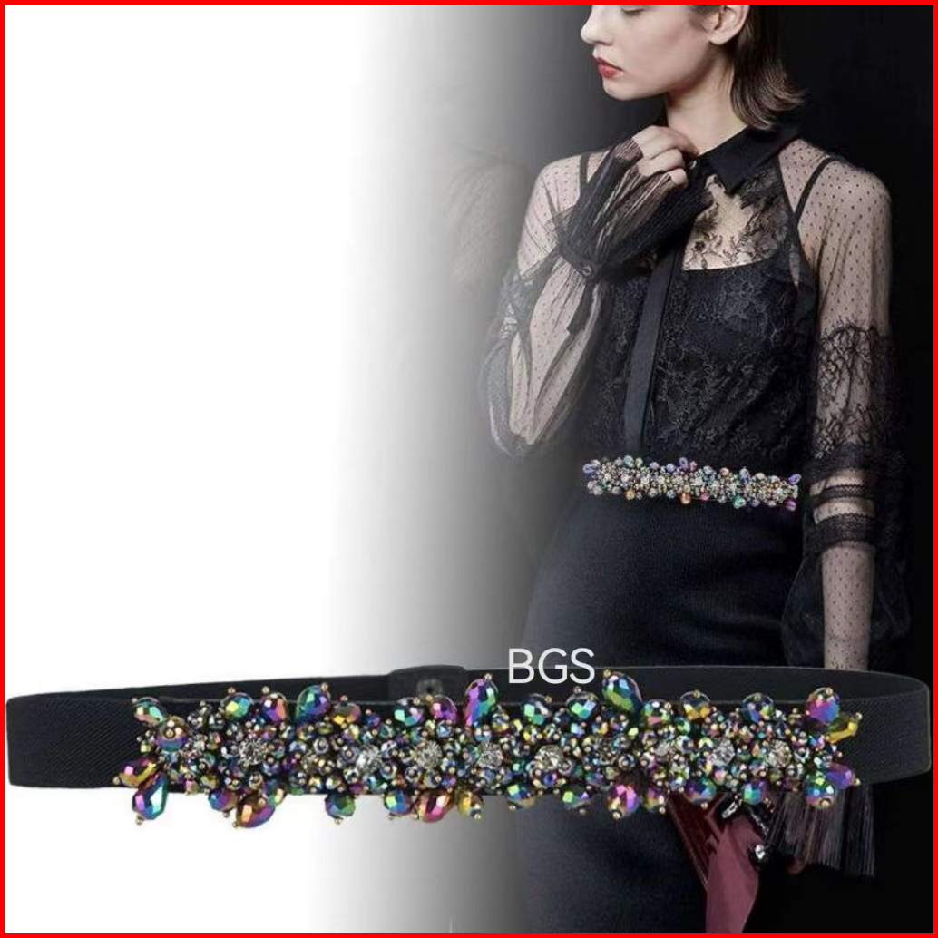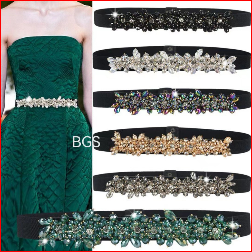 Bgs-297 Ikat Pinggang Wanita Payet Gesper Wanita Belt Ikat Pinggang Fashion Mutiara Berlian Elastis Mewah Terbaru Untuk