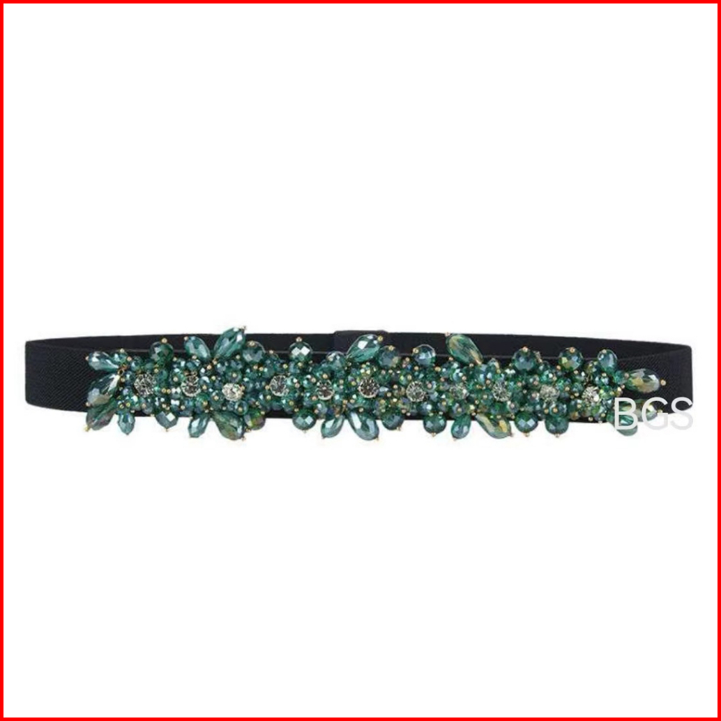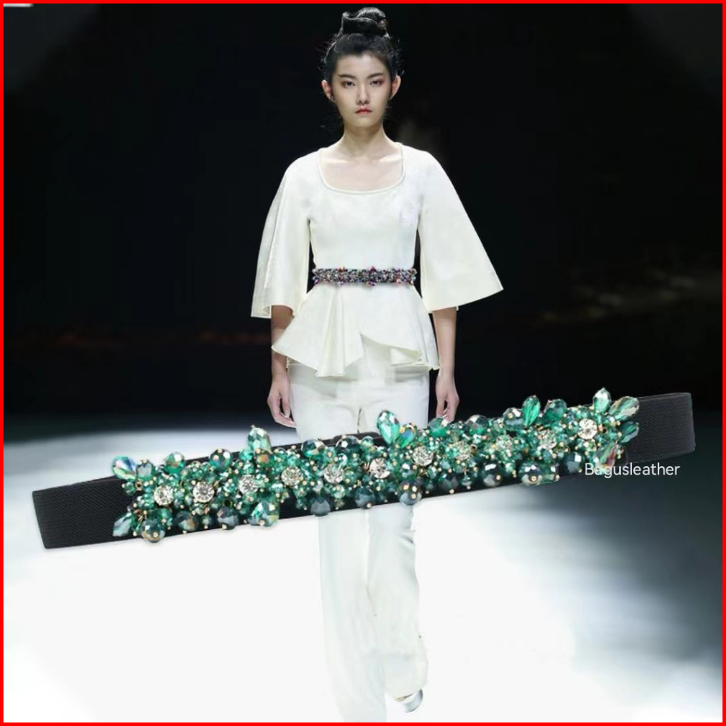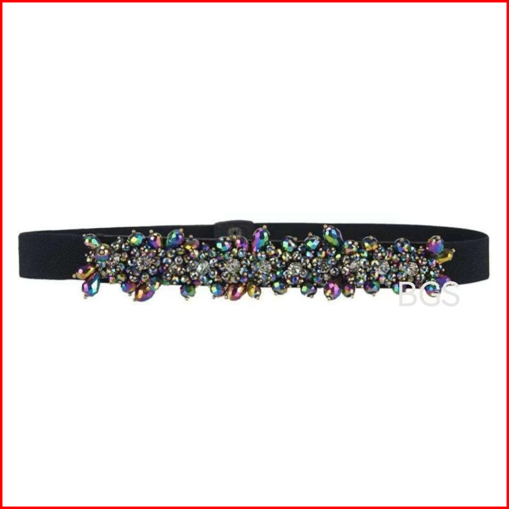 Bgs-297 Ikat Pinggang Wanita Payet Gesper Wanita Belt Ikat Pinggang Fashion Mutiara Berlian Elastis Mewah Terbaru Untuk