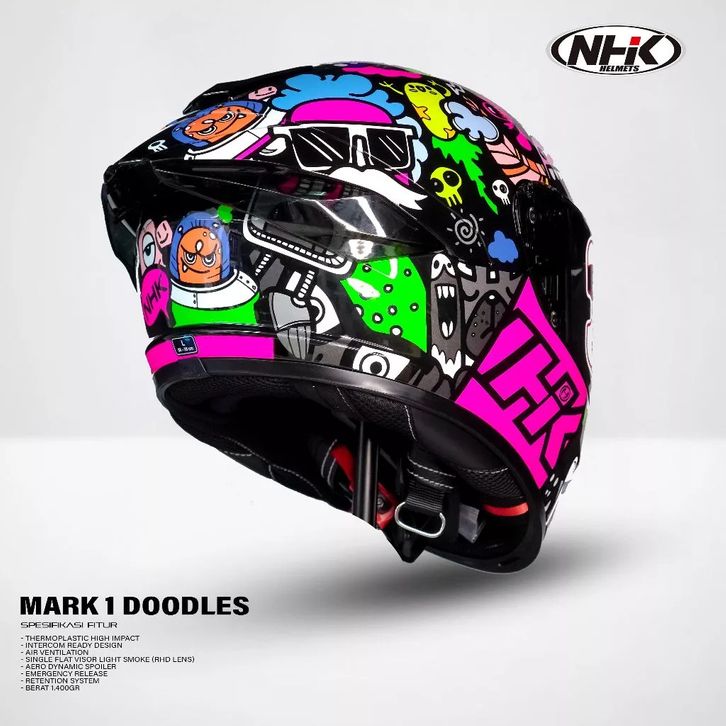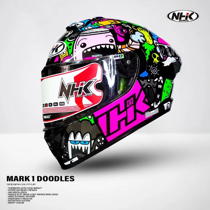 HELM NHK MARK 1 DOODLES RHD SINGLE VISOR ORIGINAL NHK HELM FULL FACE HALF FACE DEWASA NJS KYT RSV INK NHK GM ALV CARGLOS