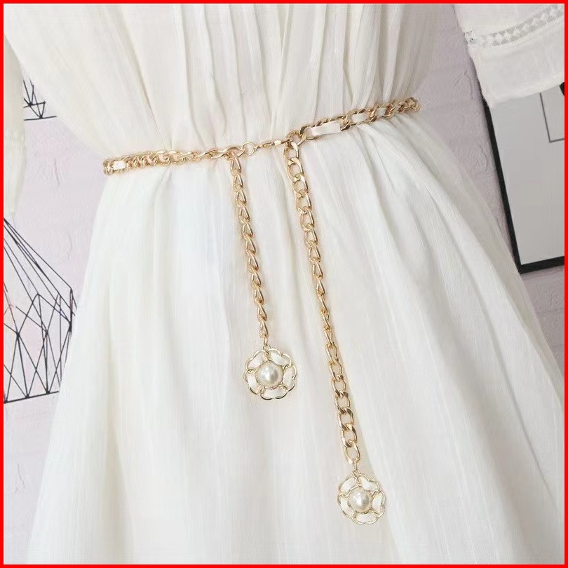Ikat Pinggang Belt Rantai Slim Model Mutiara Imitasi Fashion Wanita Korea Fashion Womens Belt -lt025