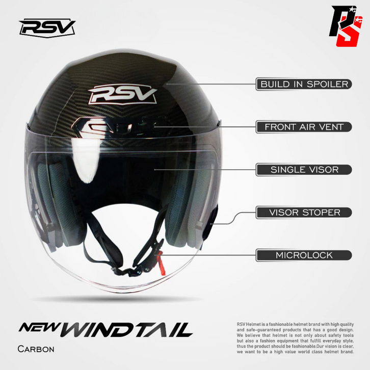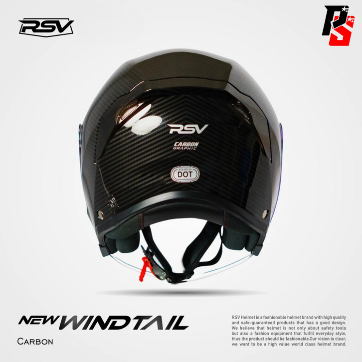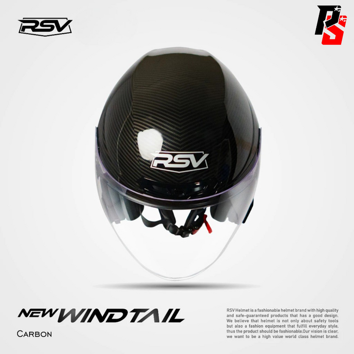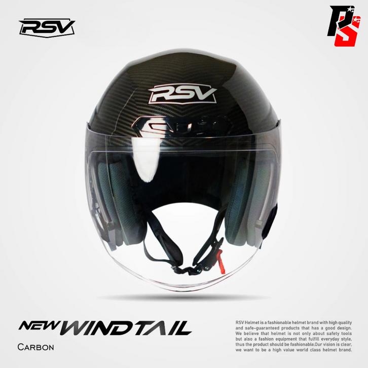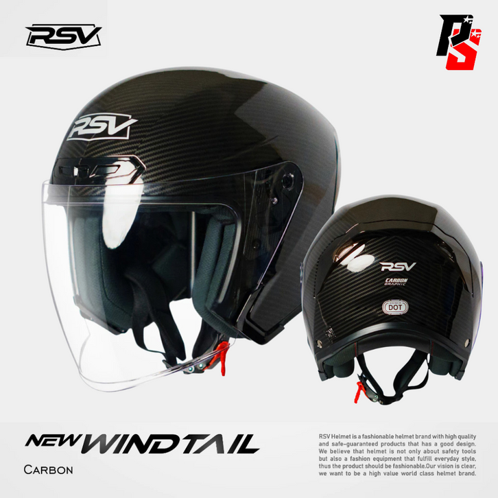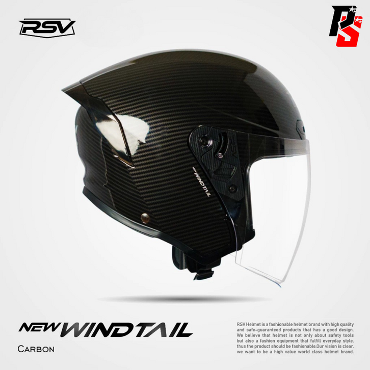 NEW WINDTAIL CARBON GLOSSY ORIGINAL SNI UNISEX SINGLE VISOR HELM HALF FACE DEWASA NJS KYT RSV INK NHK GM ALV CARGLOS