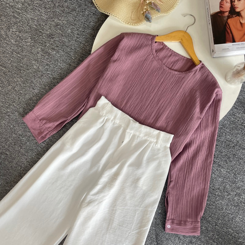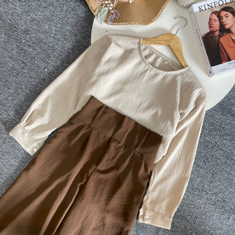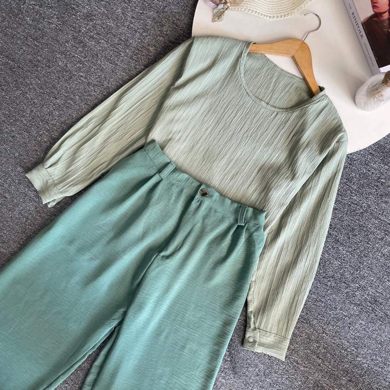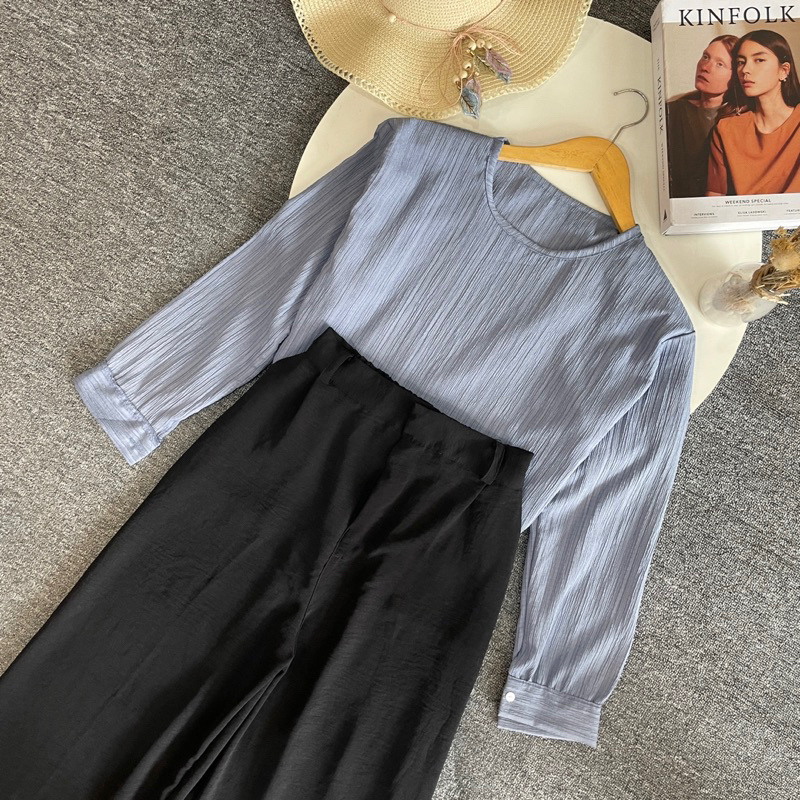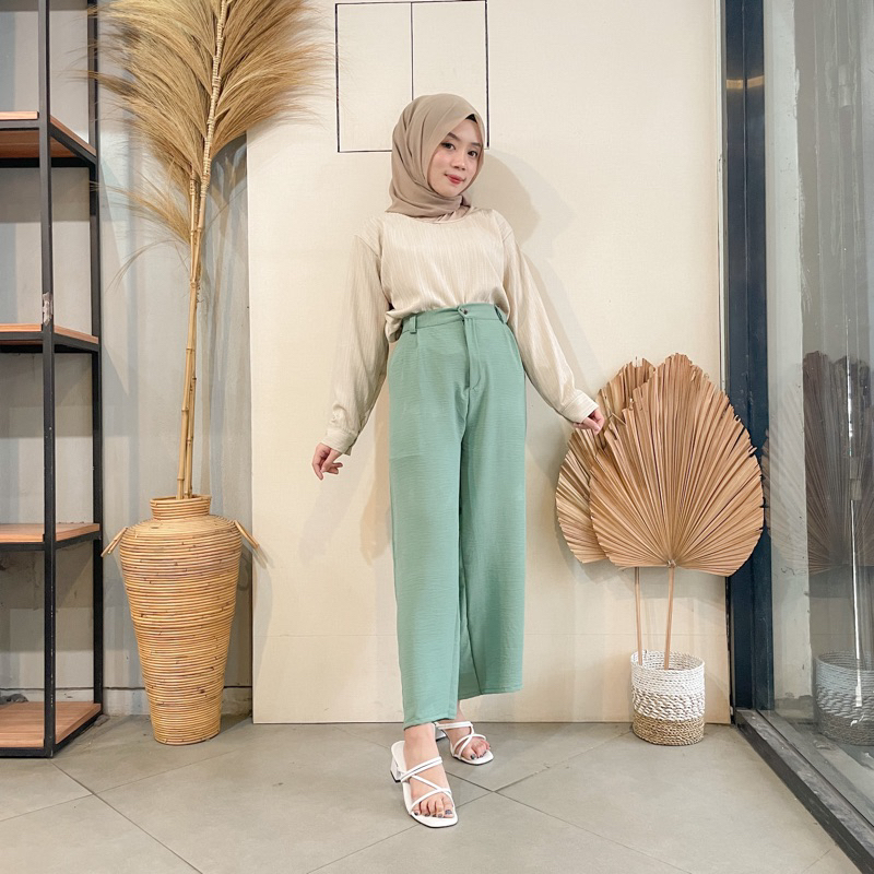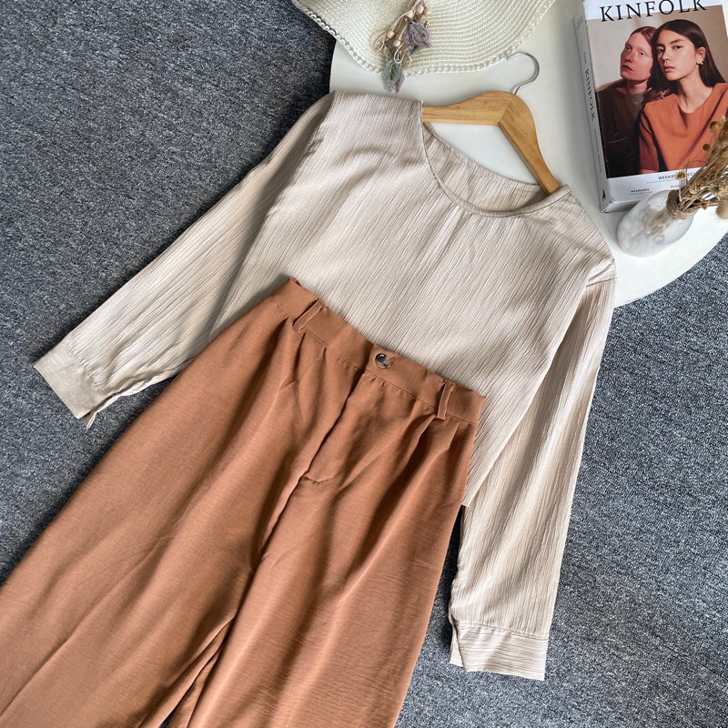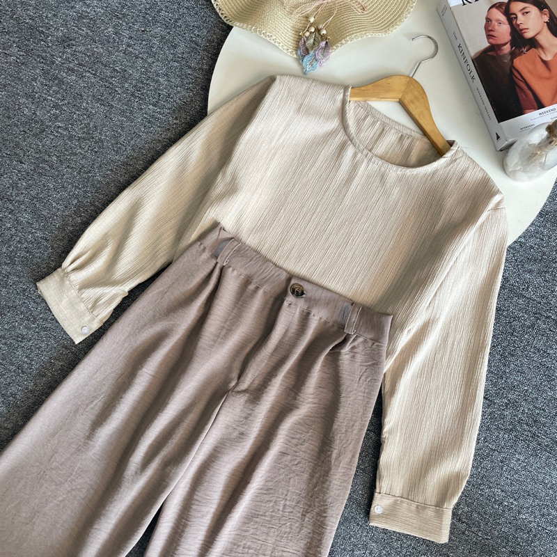 ONE SET SETELAN KERJA KULIAH WANITA ONE SET KEKINIAN OOTD HIJAB WANITA KEMEJA KOREAN STYLE LADYCRUSH DAN CELANA