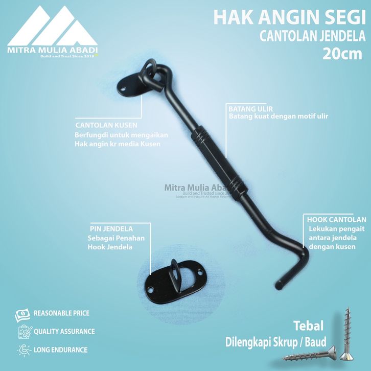 Hak Angin Hitam Lamskar Stainless l Penahan Cantolan Pengait Jendela-HITAM