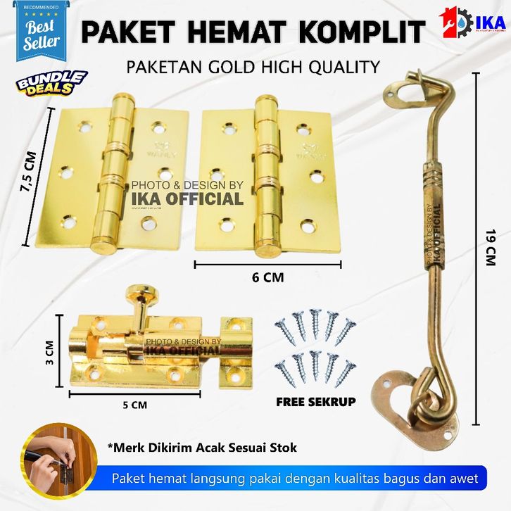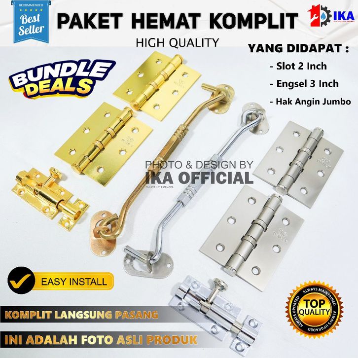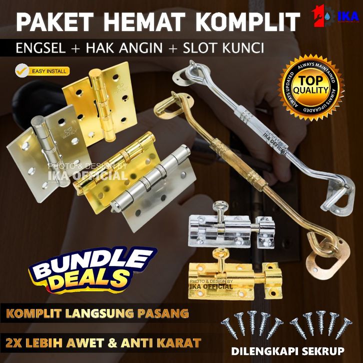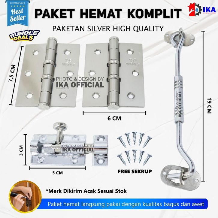 Paket Engsel Jendela 3 Inch Tebal Warna Silver 90ld Putih 3m45 1 Set + Hak Angin Silver 90ld Stainless Lamskar Cantolan