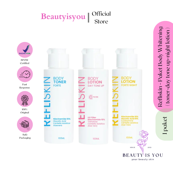 Refliskin Paket Body Whitening ( Toner-Body Night-Day Tone up ) Fs