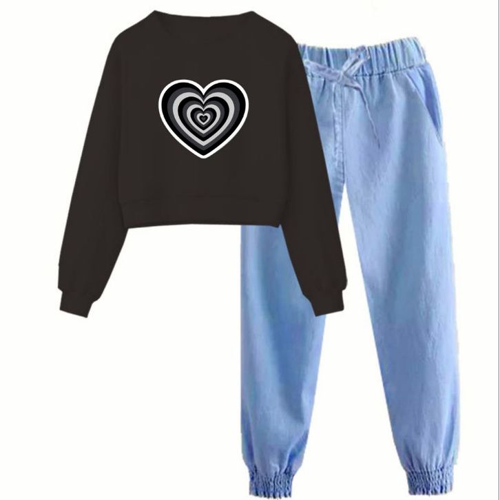 Gratis ongkir - Baju stelan anak cewe - Setelan baju anak remaja perempuan heart layer celana soft jeans