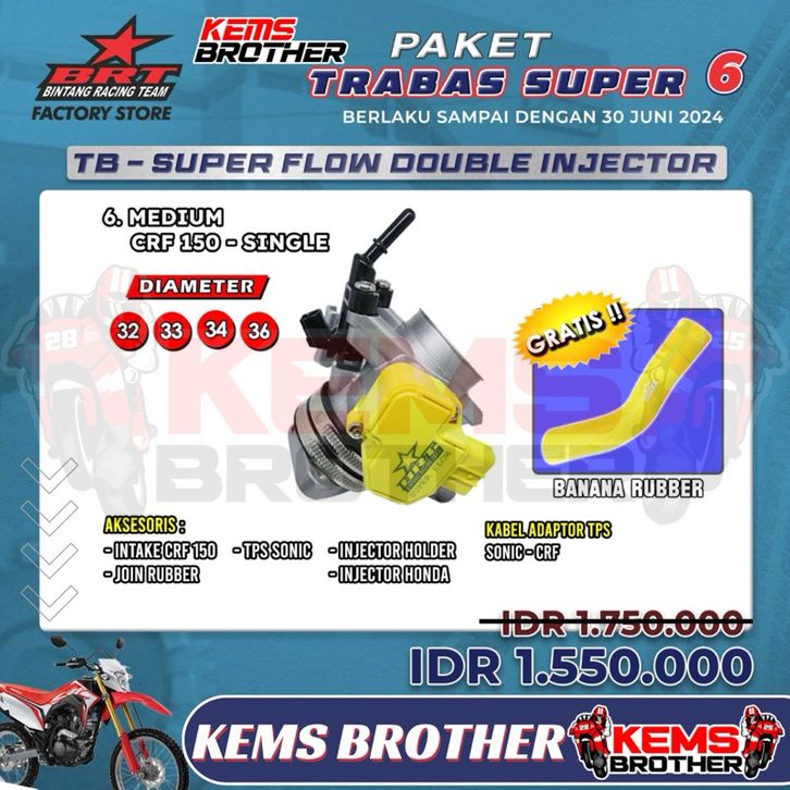 TB Throttle Body Honda CRF 150 Original BRT - Single Injector + Gratis Velocity Banana Rubber