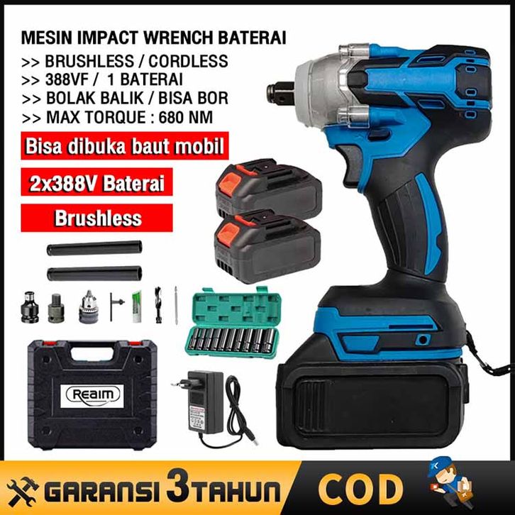 Cordless Impact Wrench Brushless 388V 680N/M Mobil Impact Baterai Mesin Bor Untuk Baut Mobil 2 Baterai Impek Termurah