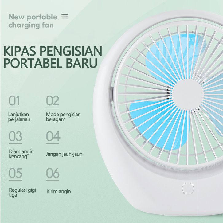 Kipas Angin Portable Meja Usb Cas 1200mAh Tidak Berisik Putar 180° Kipas