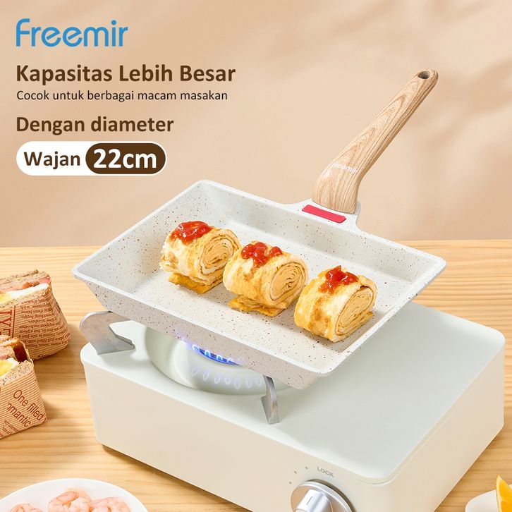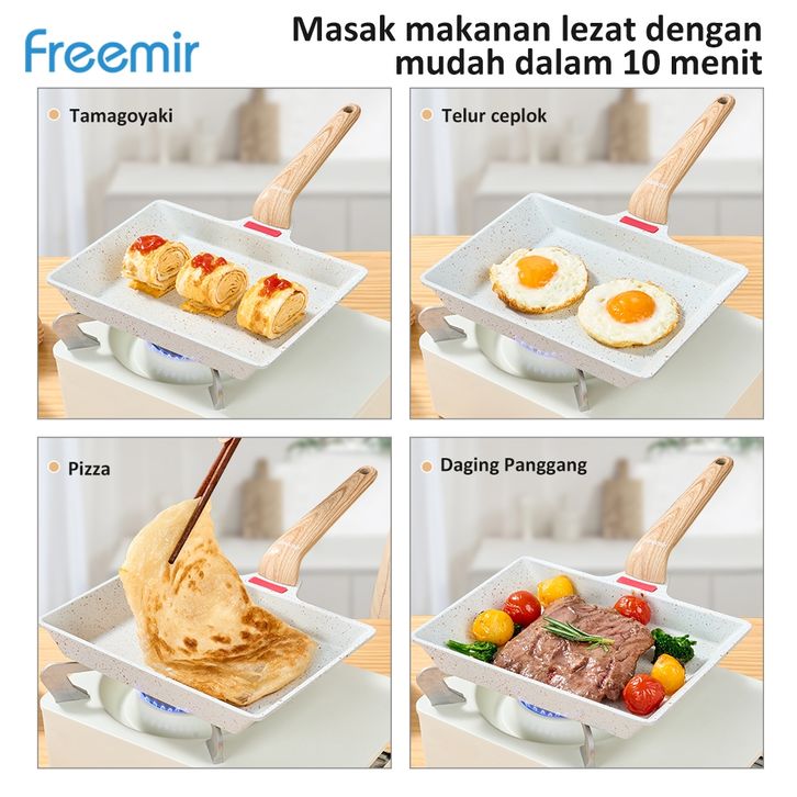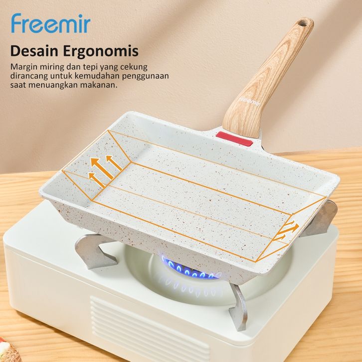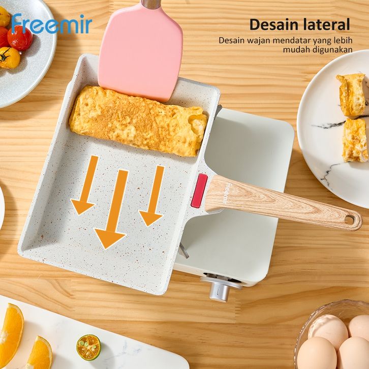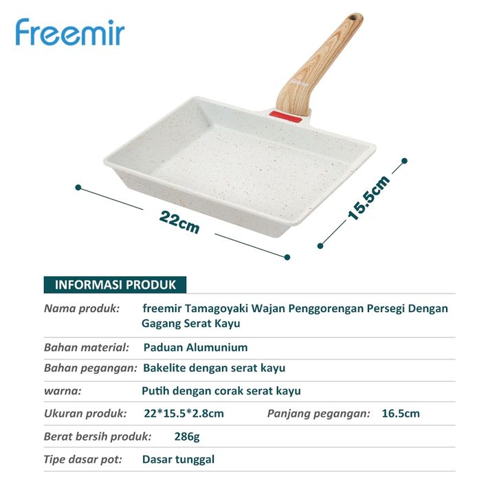Panci Wajan Penggorengan Telur Anti Lengket Krem dengan Gagang Kayu 15*22CM BERKUALITAS LANGSUNG KIRIM